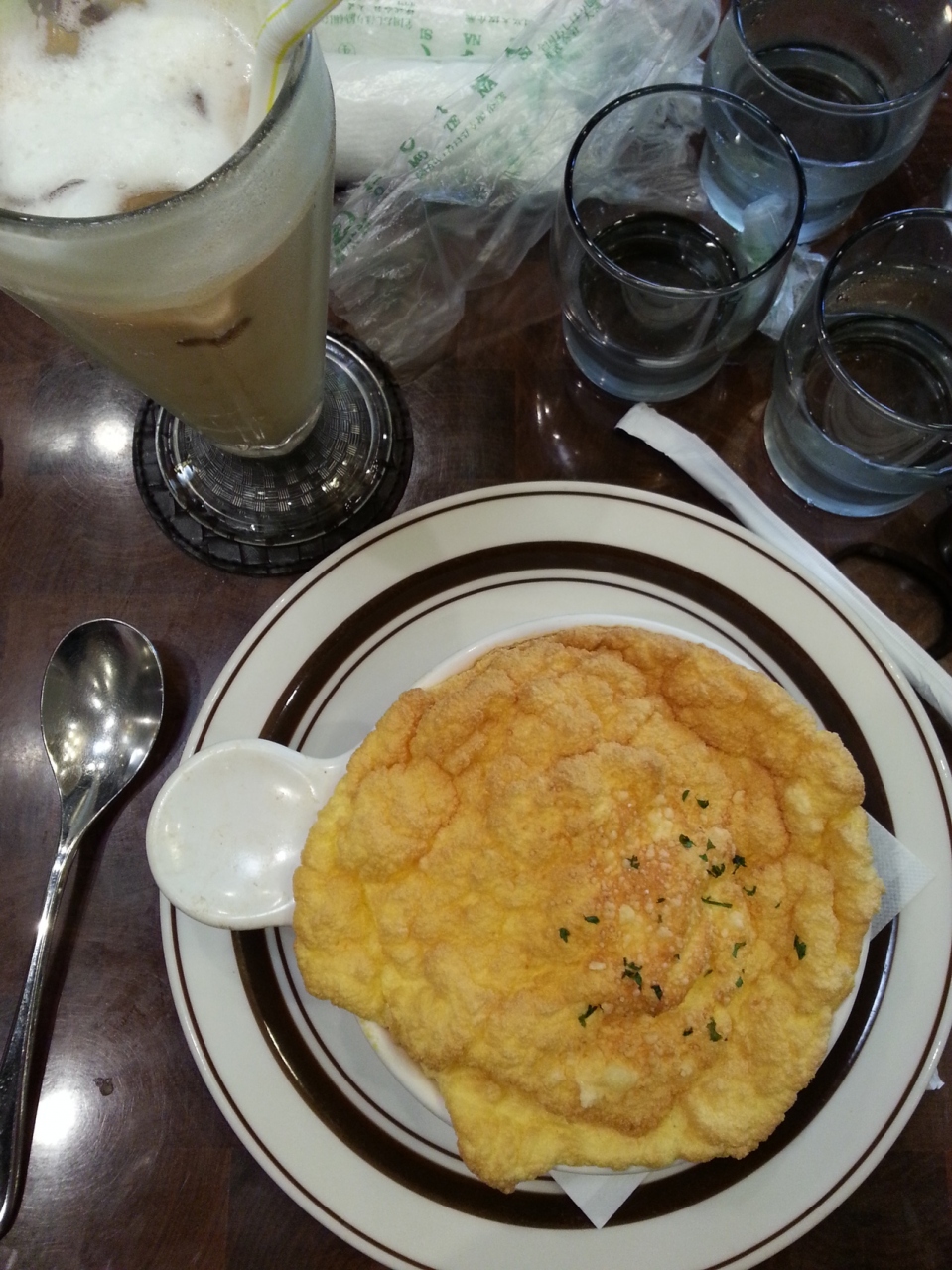 阿佐谷七夕まつりに行った際、こちらでランチを食べました。週末の13:30頃お店に行くと、入店待ちになっていて、30分ほど待って、やっと入れました。スフレドリア¥950、カツカレー¥930、スフレパンケーキダブル¥700と、アイスロイヤルミルクティ¥500、アイスコーヒー¥420などを注文し、家族でいただきました。前回お店に行ったときから、次に来たら食べようと思っていたスフレドリアが食べられて満足でした。時間をかけてオーダーが入ってから焼くスフレパンケーキも納得のお味。冷房のよく効いた店内で涼んで、美味しいお食事とドリンクをいただき、よい休憩にもなりました。次はモーニングを食べにも行ってみたいと思います。