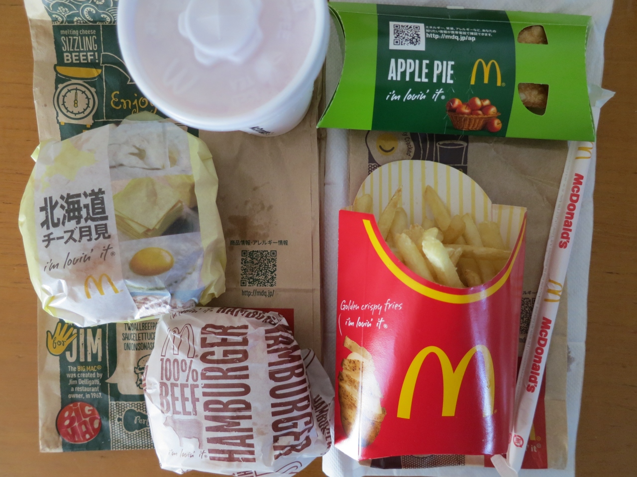 新青梅街道沿い、八成小近くにある24時間営業のマックです。ランチ時にちょうど前を通り、ドライブスルーでテイクアウトしました。北海道チーズ月見バーガー、ハンバーガー、マックフライポテト、ホットアップル、マックシェイク(紫いも)を購入し、帰宅後娘と一緒にいただきました。期間限定のマックシェイク(紫いも)にひかれて、ランチはマックになりましたが、いも好きの私には大満足の味!とっても美味しかったです。終了までにもう一回飲みたいと思う味でした。
