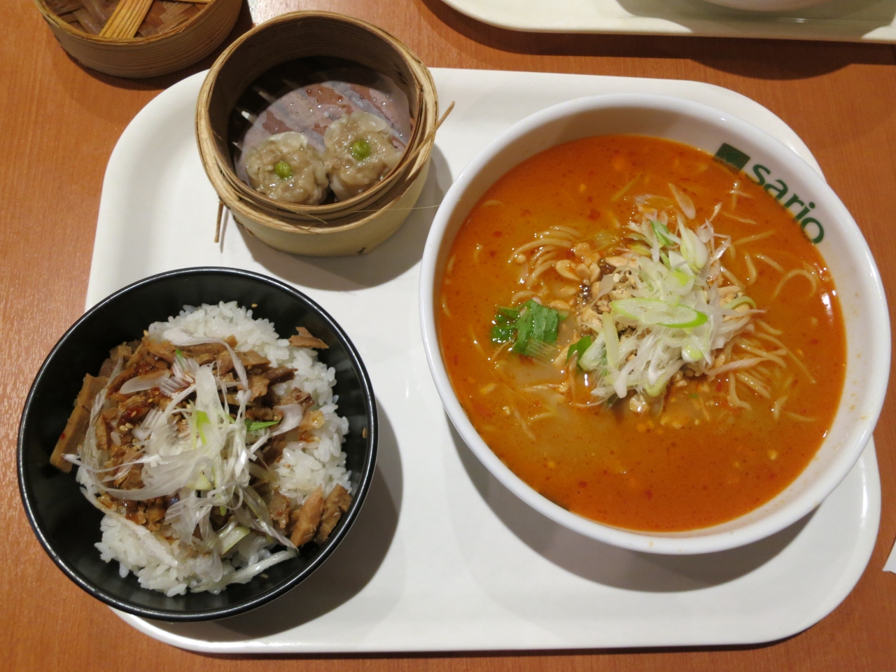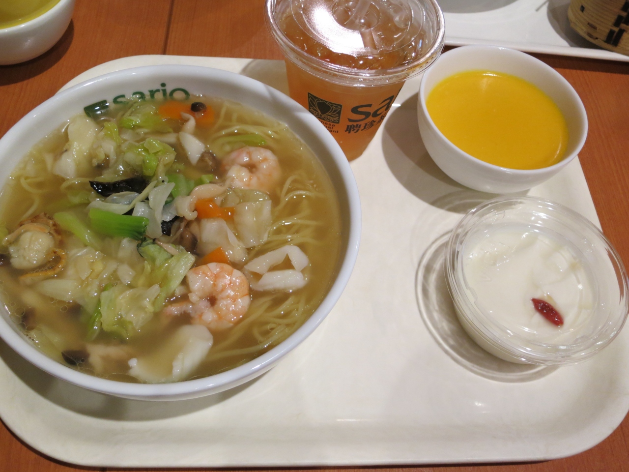 横浜ワールドポーターズ1Fにある、セルフサービスのカジュアルチャイニーズレストランです。家族で横浜ワールドポーターズに行った際、こちらでディナーをいただきました。土曜日の夕食時でしたが、店内はお食事している人たちはいるものの、混んではいませんでした。家族で、「坦々麺セット・杏仁豆腐付き」(坦々麺・ミニ叉焼飯・貝柱焼売・杏仁豆腐【小】)¥1100、海鮮五目麺¥700、唐揚げ¥360、マンゴープリン¥380をシェアしていただきました。セルフサービスのカジュアル中華で、味は美味しいけれど、お得にお食事出来ました。気軽に、お手軽に、中華が食べたくなったら、おススメのレストランです。