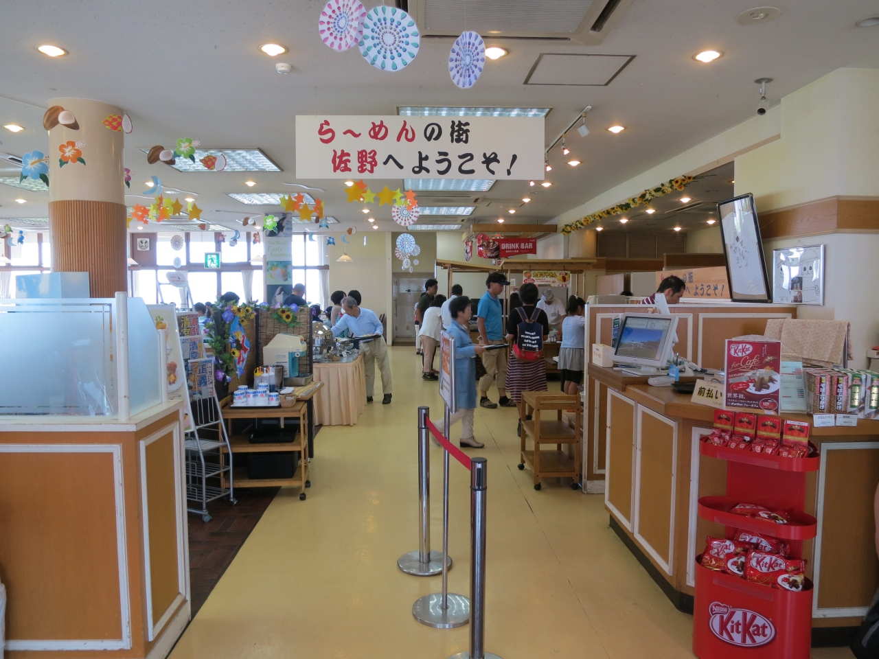 東京から那須へ向かう途中、週末の朝9時頃寄りました。サービスエリアは、すでに沢山の人でにぎわっていて、レストラン・フードコートもにぎわっていました。レストランでは、朝7~10時まで朝食バイキングをやっていました(大人¥1000・小学生¥650・幼児無料)。名物「佐野ラーメン」は、レストランにもフードコートにも、朝食バイキングのメニューにもありました。ドライブ中に手軽に佐野ラーメンが食べられるSAです。