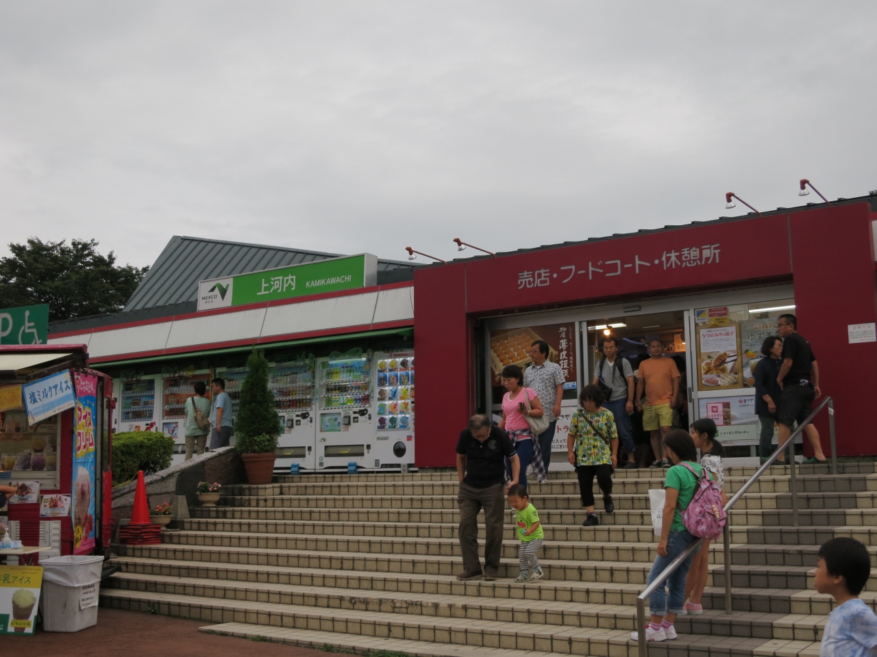 東北自動車道にあるサービスエリアです。那須からの帰り、週末の17時頃寄りました。人は多かったけれど、混んでいる感じはしませんでした。24時間営業のショッピングコーナーやスナックコーナーの他、レストランがありました。スナックコーナーやレストランでは「宇都宮餃子」が食べられ、ショッピングコーナーでは「餃子」を沢山見かけ、上河内SAが「餃子の街」宇都宮市にあることに気付きました。「宇都宮餃子」が食べたくなったら、おススメのSAです。