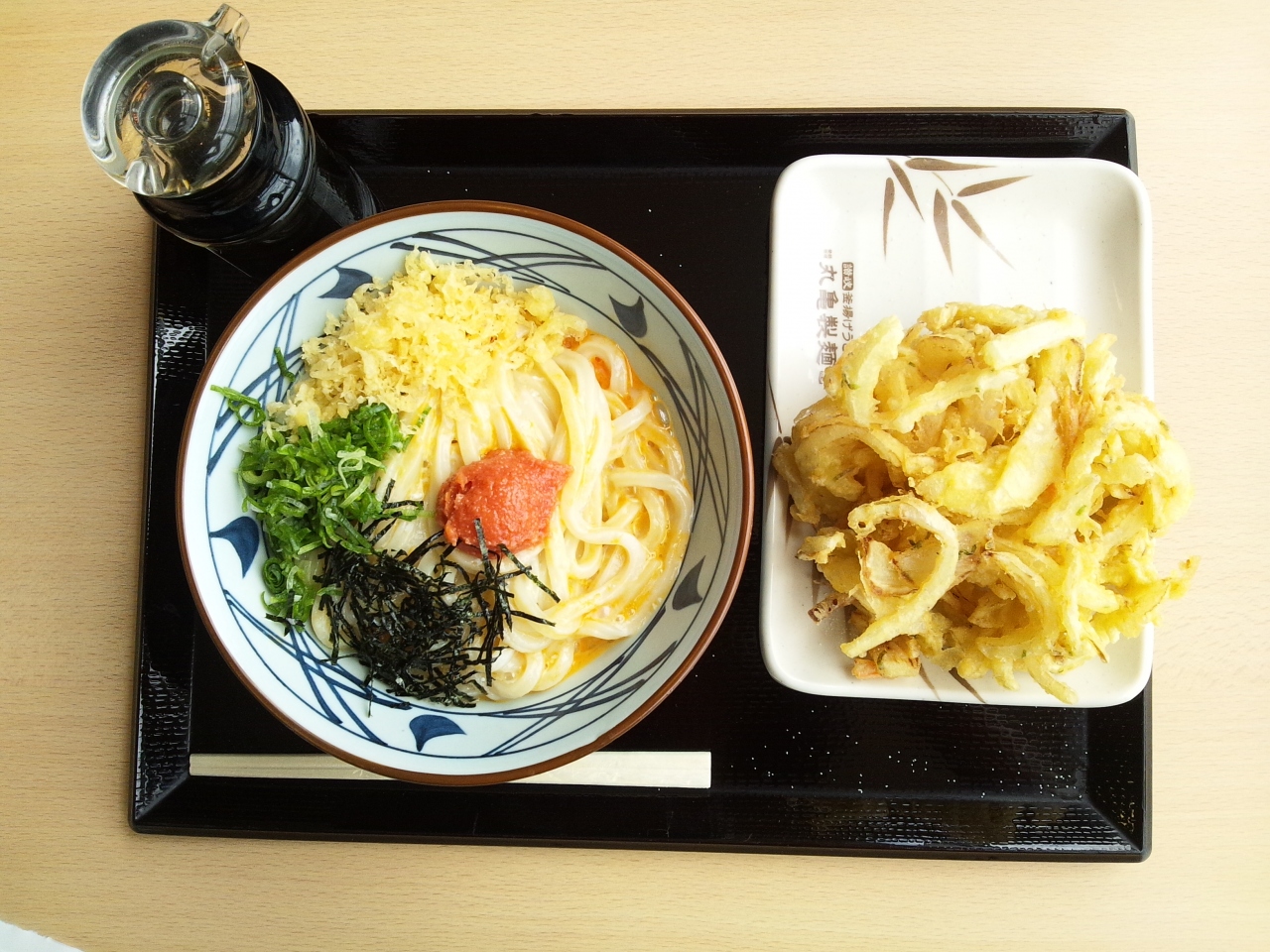 イオンモール東久留米3Fのフードコートにある釜揚げ讃岐うどんのお店です。休日に家族でお買い物に来ていてフードコートでランチを食べることにし、こちらのお店の「明太釜玉(大)」¥500と「野菜かき揚げ」¥130をいただきました。休日のお昼時で、15分ほど待って注文しました。もちもちの釜揚げうどんに、明太子と卵が良く絡み、とっても濃厚で美味しかったです。子どもたちと一緒にいただきましたが、あっという間になくなりました。ビックサイズで¥130とお得な野菜かき揚げは、子どもたちの大好物で、ちぎっては、パクパク、こちらもすぐになくなりました。いろいろなところにある丸亀製麺。子どもたちもよく食べ、お値段もリーズナブルなので、外食でよく利用する我が家のお気に入りのお店です。