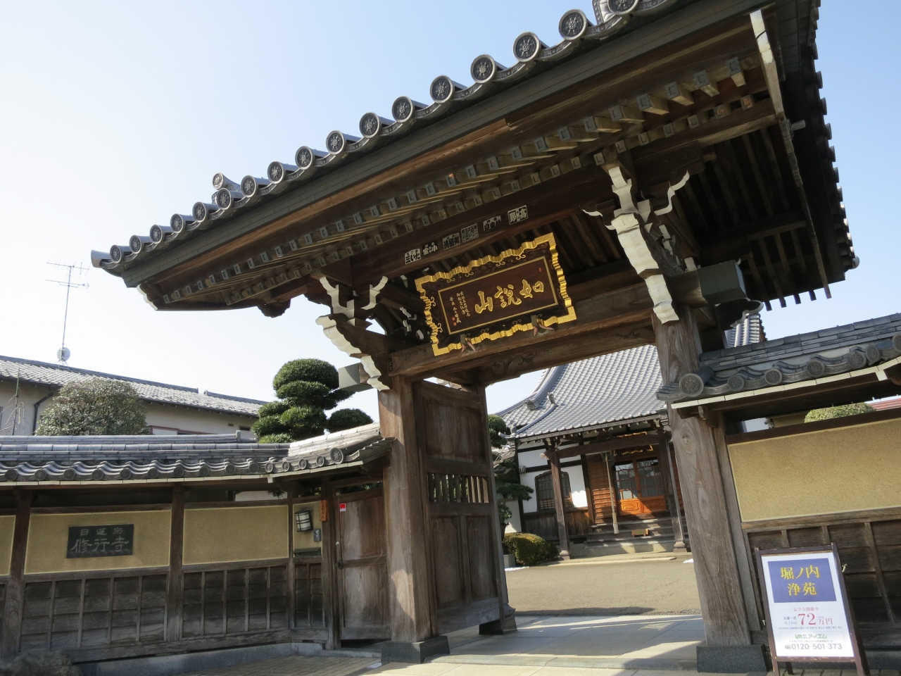 妙法寺の近くにある、如説山と号する日蓮宗寺院です。寛永3(1626)年、下総国葛飾郡平賀村(現千葉県松戸市)の本山本土寺の末寺として、修行院日城上人が麹町に開創したものだそうです。寛永11(1634)年に赤坂一ツ木へ移転、明暦の大火(1657年)後、市ヶ谷谷町(現新宿区富久町)へ移転、大正元(1912)年当地に移転したそうです。昭和20(1945)年5月には空襲を受け、建物すべてが消失し、再建されたようです。妙法寺周辺の寺院が沢山あるエリアの一角にあります。