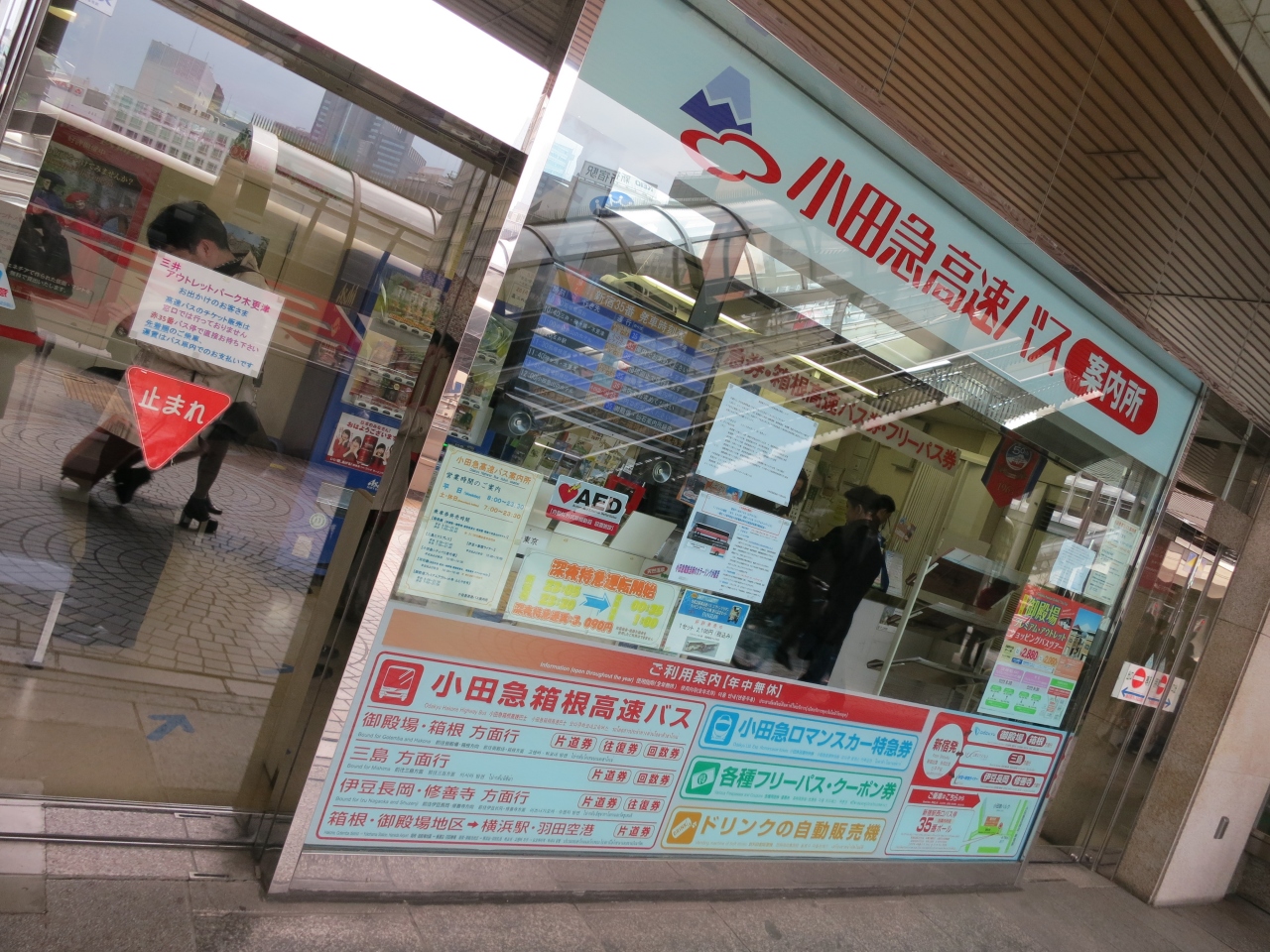 小田急高速バス案内所は、新宿駅西口ハルクの1F青梅街道沿いにあります。ここが秋田や岐阜、岡山、広島、高知、箱根などへの高速バスの発着所になっていて、年末年始やお盆の時期の夜は、帰省ラッシュで、バスに乗る人で大混雑しています。
