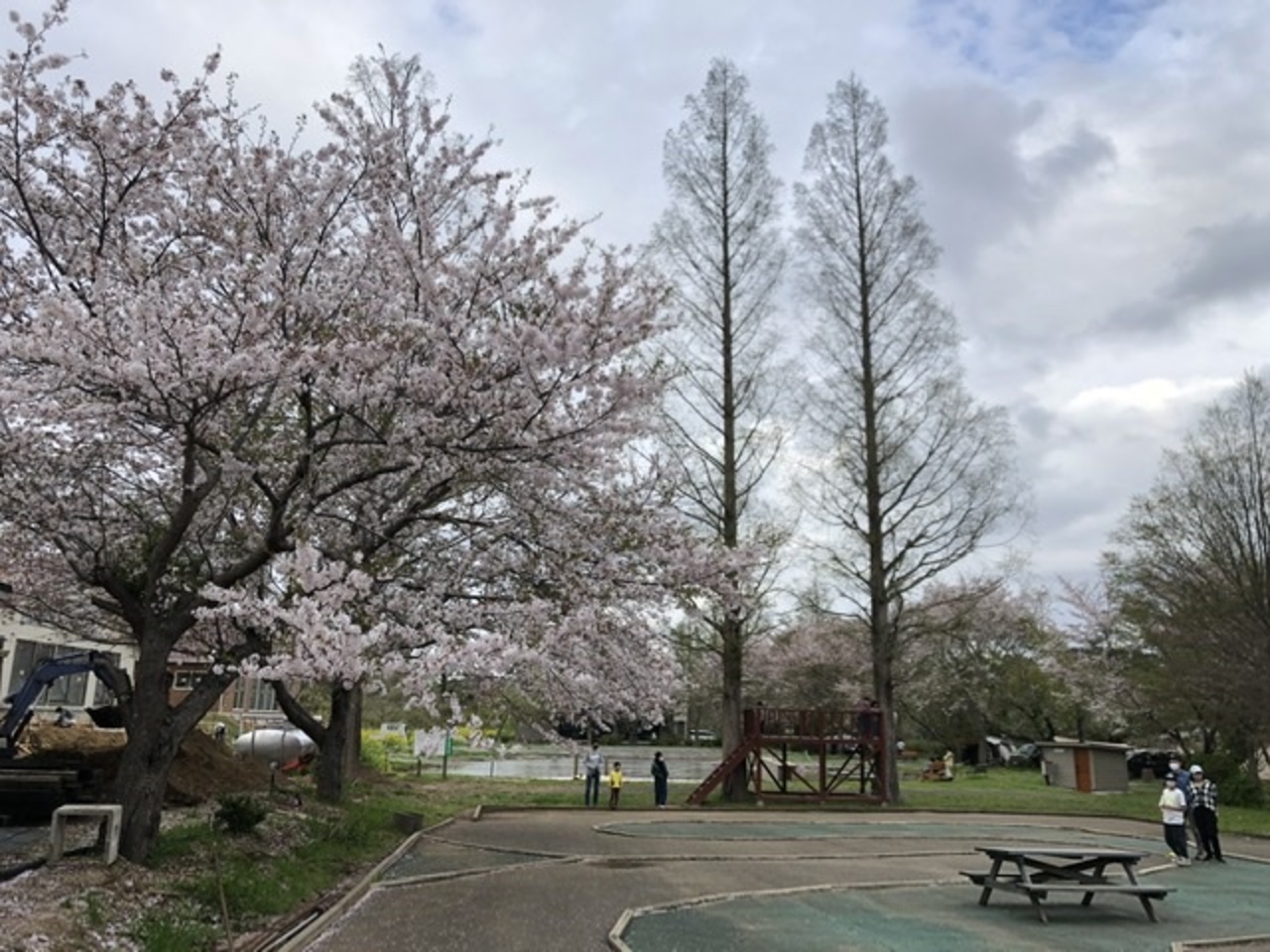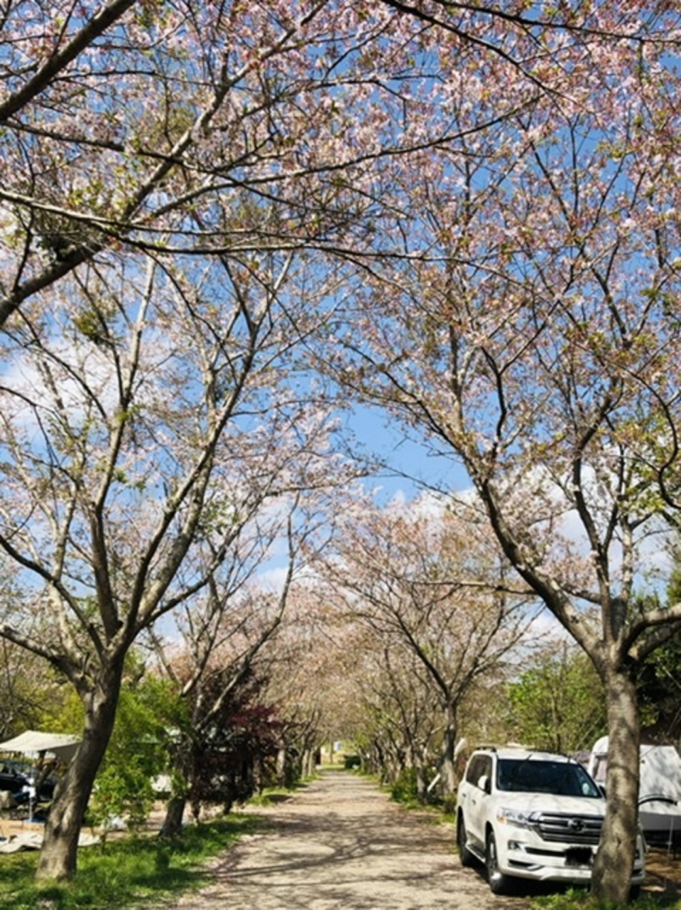 2泊3日のお花見キャンプに行きました。場内には大きな木がいっぱい、お花もいっぱい咲いていて、しっかりお手入れが行き届いた素敵なキャンプ場でした。場内の色々なところで見られるサクラは、満開を通り越して、桜吹雪がきれいでした。トランポリン(20分1人¥100)もあるし、ラジコンコースもあるし、グラススキーも出来て、ピザ釜もあって、スタッフの方の対応も良く、人気の理由が分かるキャンプ場でした。我が家のサイトは、別荘地に面していて、見る方向に寄っては、別荘地のお庭という感じもしつつ・・・それでもサイトは充分広くて、木々に囲まれ気持ち良かったです。キャンプ場のお隣には、道の駅のような施設もあって、中日に歩いて行って、地元のお野菜や手作りスイーツなどを購入しました。