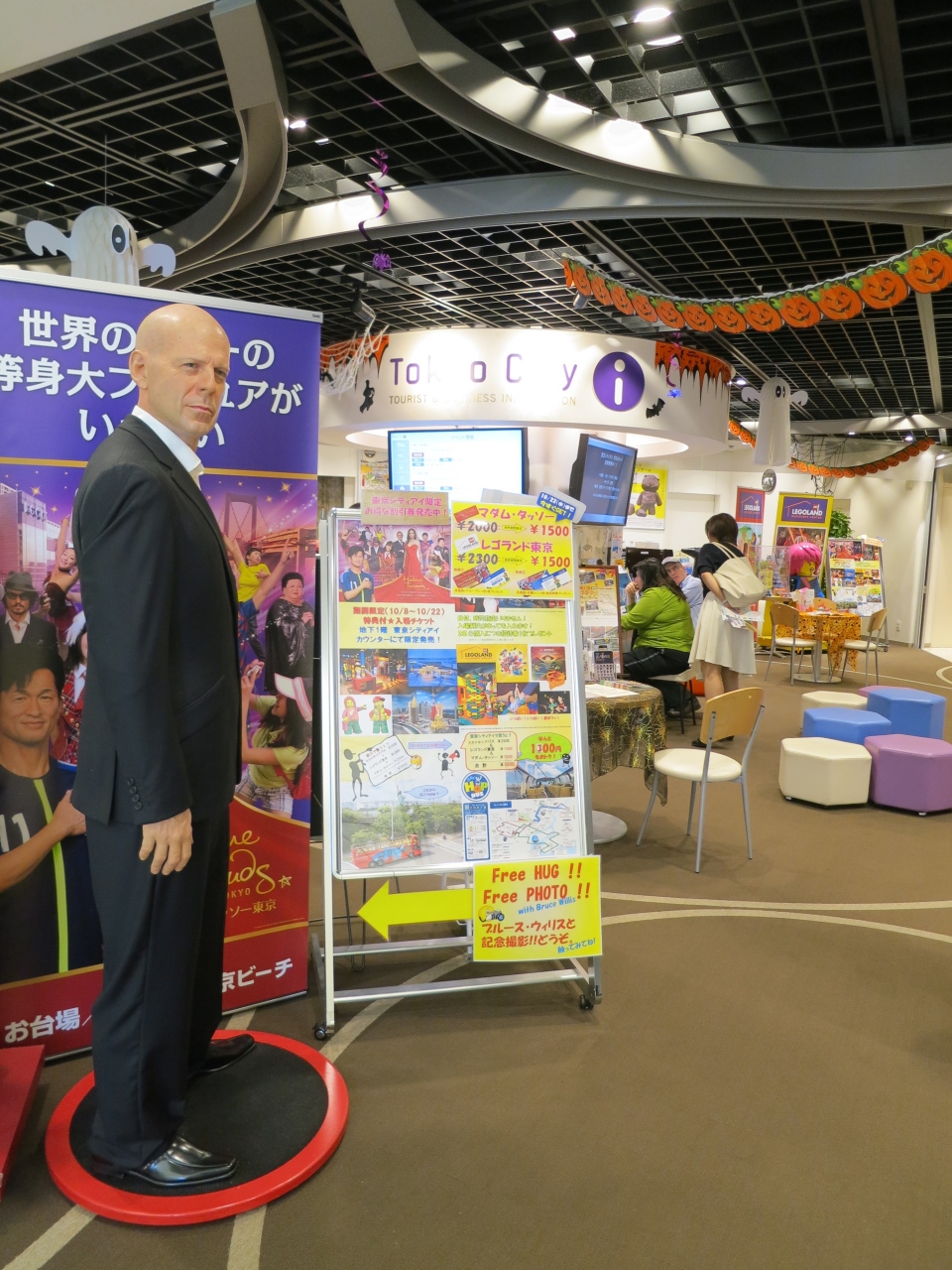 キッテB1F&1Fにある観光・ビジネス情報センターです。東京駅から直結の地下道を通り、キッテB1F入り口を入るとすぐの場所に東京シティアイがあります。東京シティアイ入り口では、蝋人形のブルース・ウィリス(マダム・タッソーの宣伝)が迎えてくれました(人気のフォトポイントになっていました)。センター内は、日本各地のパンフレットが揃い(日本語以外もありました)、奥にはカフェもありました。チケットや宿泊の手配も出来るようなので、旅行計画を立てる際におススメの場所です。海外や地方からのゲストと一緒の際はぜひ寄りたい、駅近の情報いっぱいのきれいなインフォメーションです。
