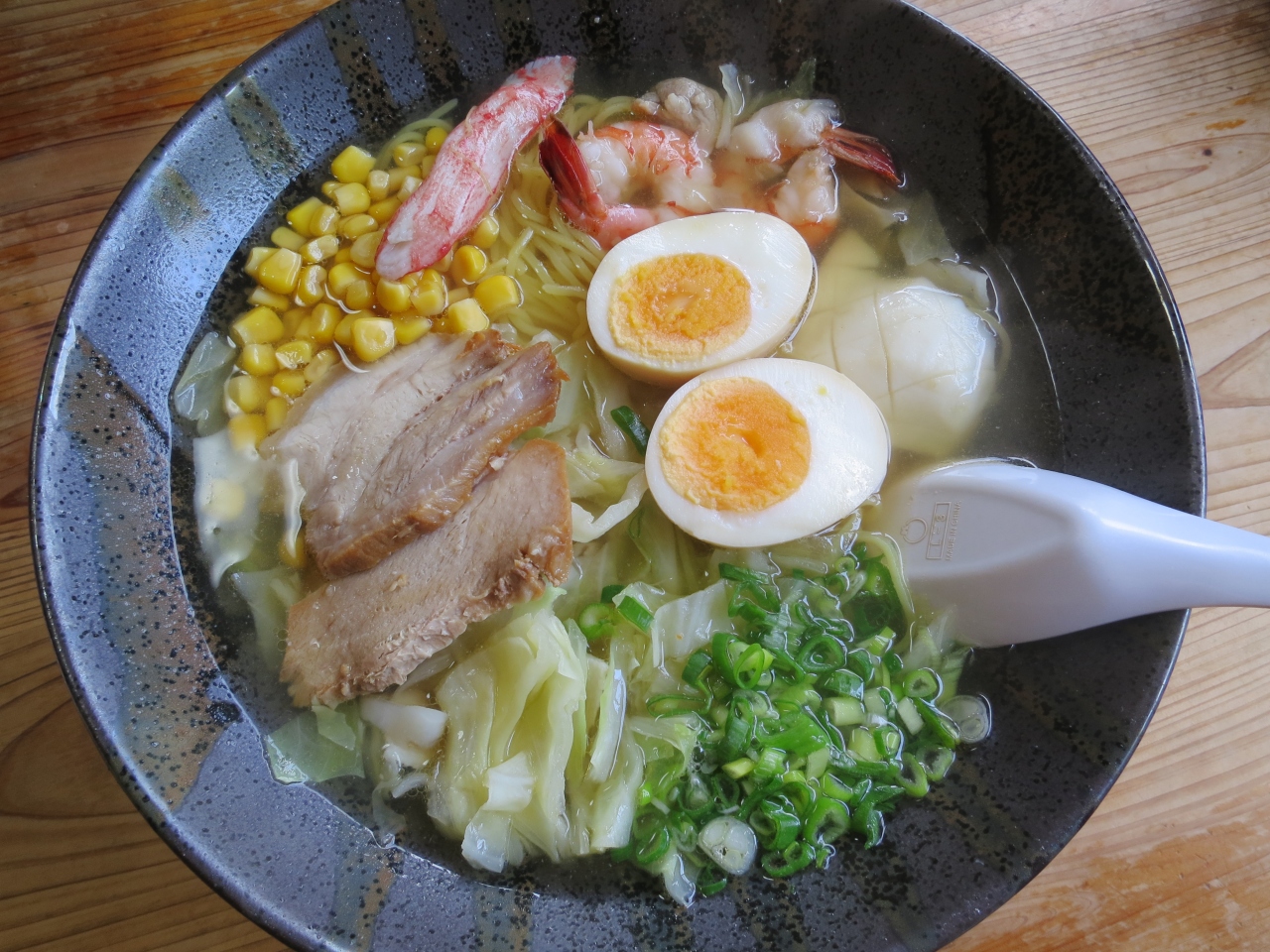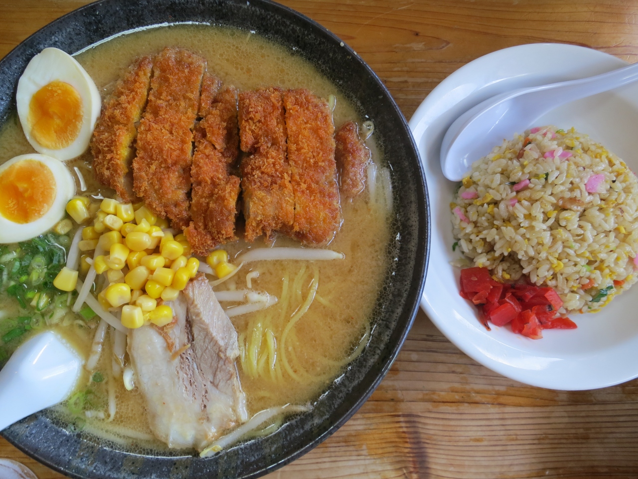 高知県民が選んだ「高知家グルメガイド」にも載っている、山間の不便な場所にあるのに、いつも混んでいる人気のラーメン店です。お盆の時期のランチに、家族で食べに行きました。お昼過ぎに着きましたが、いつも通り駐車場もいっぱい、お店も入店待ちの列が出来ていました。順番表に名前を書いて、15分くらい待って、2Fのお座敷に案内してもらいました(子ども連れの家族は2Fに案内されるようになっていると思います)。お座敷は広くて、お客さんは沢山いるけれど、ゆったり使えるし、子ども用の本や、イスも置いてくれていて、子ども連れにとても親切です。大将もオススメのメニューから、みそカツラーメン・半炒飯セット¥1020と五目ラーメン¥780を、家族でシェアしていただきました。サクサク揚げたてのカツが乗ったみそラーメンは、スープとカツの組み合わせがよく、美味しかったです。五目ラーメンは、チャーシューや海老、ゆで玉子(生卵も選べます)、キャベツ、ねぎ、コーンなどが入った豪華なラーメンで、スープは塩にしましたが、相性がよく、こちらも美味しかったです。どちらのラーメンも子どもたちもよく食べました。炒飯も、味が濃く、美味しかったです。人気のラーメン店だけど、店員さんも親切で、子連れでも行きやすいお店です。すぐ近く(もう少し愛媛方面)には、芋けんぴで有名な「横山の芋けんぴ」屋さんがあるので、ここまで来たらついでに寄っていくのがオススメです。