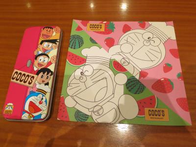 21時過ぎに夕食を食べに、家族で寄りました。高知では、夜遅くまでやっている飲食店は多くなく、さらにファミレスも少ないので、朝7時から深夜1時までやっているCOCO’Sは重宝します。入店と同時に子どもたちはドラえもんの塗り絵をもらい、そちらに熱中。親もゆっくりとお料理が来るのを待つことが出来ました。「和風ジャポバーグ+Aセット」¥970+税、「半熟卵のクリームスープ」¥880+税、「おこさまナポリタン」¥380+税を注文し、家族でシェアしていただきました。ドリンクバーもあり、深夜までやっていて、子どもと一緒にも利用しやすいので、重宝するファミレスです。この日も夜遅くまでにぎわっていました。