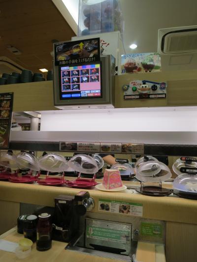 子どものリクエストで、携帯で予約し、週末の夜に行きました。お寿司は全部¥105で(一貫のものもあり)、サイドメニューにはラーメンやうどん、丼物、汁物、揚げ物、お惣菜、和洋菓子、アルコール類、ジュース、本格コーヒーなどがあり、いろいろなものを食べることができます。子どもたちは、お寿司が回って来るのを見ているだけでも楽しいし、タッチパネルで注文したり、注文の商品がオーダーレーンで届くのを見たり、食べ終わったお皿を各テーブルにある回収口へ投入したり、5皿に1回「ビッくらポン!」が出来、当たれば景品がもらえたり・・・楽しいことが沢山あって、大好きなお店です。この日も店内は、家族連れでにぎわっていました。生ビール(¥500を投入して自分で入れます)を飲みながら、お寿司や揚げ物、うどんをいただき、最後に夏季限定のかき氷を食べました。子どもたちもそれぞれ好きなお寿司に揚げ物、うどんにアイスクリームとよく食べました。週末のランチ、ディナー時は混んでいるので、携帯から予約して(E-PARK携帯予約システム)行くのがオススメです(人気の日時は数日前には予約がいっぱいになっています)。