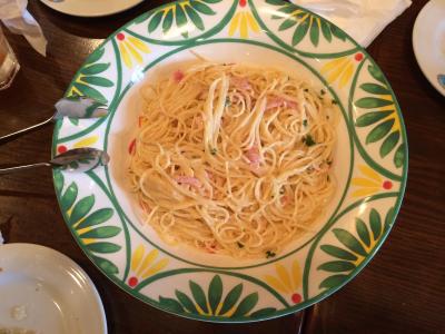 東急百貨店裏にある、チェーン店のパスタ・南欧料理レストランです。ランチ時にちょうど近くを通りかかったので、週末のお昼時に家族で寄りました。店内はにぎわっていましたが、すぐに席に案内してもらいました。ランチメニュー(ドリンク飲み放題付)から、「ピッツァクアトロフォルマッジョ」¥1000と、「ベーコンのカルボナーラのパスタ(大)」¥1130、「本日のオススメのパスタ」¥1000を頼み、家族でシェアしていただきました。ピザもパスタも美味しくて、子どももよく食べました。小さな子ども連れの家族も多く、子ども用の補助いすや食器なども貸してくれます。お店は2階ですが、エレベーターもあり、ベビーカーは入り口横におけるので、ベビーカーでも大丈夫なレストランです(ベビーカーに座ったままお食事をする場合は、テーブルまでベビーカーで行けます)。
