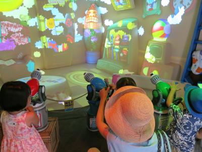 前を通ったら、ほとんど待ち時間なく乗れるということで、4歳の長女ともうすぐ2歳の次女と家族で乗りました。トロッコに乗って、ピノキオの世界をたどるアトラクションです。1歳の次女も問題なく乗れました。小さな子ども連れでも楽しめるアトラクションだと思います。