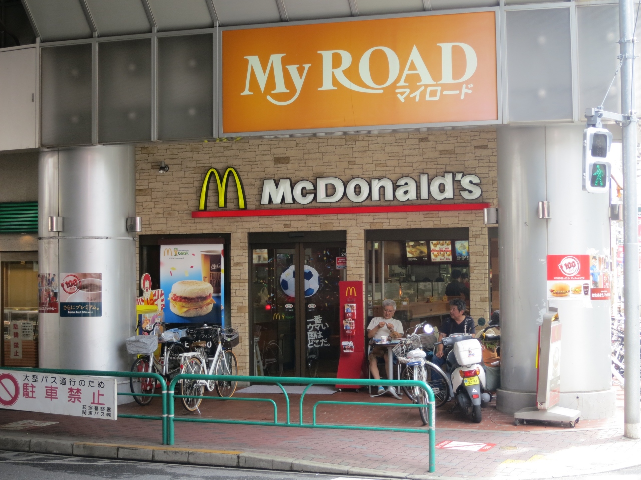 西荻窪駅前(横)、高架下、マイロード入り口にあるマックです。駅前でいつもにぎわっているお店です。お買い物後に、娘がマックに寄りたいということで、こちらで休憩をしました(いつもはテイクアウトすることが多いお店ですが、平日の午前中で、空席もあったので寄って行くことにしました)。娘は大好物のソフトツイストを、私はお気に入りのホットアップルパイを、そして私も娘も好きなマックシェイク(ストロベリー)も注文して、ゆっくりしたひと時を過ごしました。¥100マックが復活して、お財布にもやさしく、お店はいろいろなところにあって、子どもと一緒でも入りやすいので、とても重宝しています。こちらの店舗は、駅前で24時間営業の、子ども連れ家族も多くて、子どもと一緒でも入りやすい、いつもにぎわっているお店です。