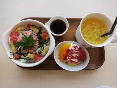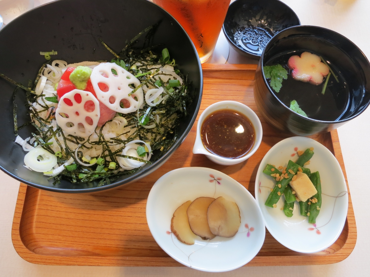 ルミネでお買い物後のランチに家族で寄りました。エレベーターを降りてすぐの場所にある、雰囲気も何だか和む和カフェです。平日の12時前でしたが、お食事をされている方で、店内は半分ほど埋まっていました。ベビーカーを預けて、大きな窓際の席に案内してもらいました。私は、ランチメニューから「ネギトロ丼」(お吸い物・小鉢・お漬け物・選べる飲み物付)¥910を、娘は「お子様ネギトロ丼」(フルーツが添えられたワッフルのデザート・オレンジジュース付)¥620をいただきました。ネギトロが大好きな娘は、あっという間に1人でお子様ネギトロ丼を完食(促されずに完食するのはとても珍しいことです)。とても美味しかったと言っていました。大人のネギトロ丼も、見た目も華やかで、新鮮なネギトロが美味しく、満足なランチでした。お店を出る頃には、12時も過ぎ、入店を待つ列が出来ていました。キッズメニュー(2種類)やキッズチェアー、子ども用食器もあり、子連れでのお食事にもオススメのお店です。大きな窓からは、駅前ロータリーに止まるバスやタクシーなどが見え、子どもたちは外を見ながら楽しく待つことができました。