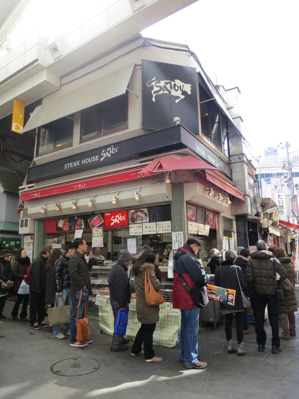 ダイヤ街を通っていると、コピス方向にいつも長い行列の出来ている精肉店です。この列は、大人気のメンチカツを購入する列で、その他のものを買うには、お店のカウンター前に行き、数人待てば購入出来ます。吉祥寺名物の「元祖丸メンチカツ」¥200は、牛肉と粗みじんの玉ねぎが入ったメンチカツで、お肉たっぷりの肉好きにはたまらない超ジューシーなメンチカツです。5個以上買うと1つ¥160になるので、列に並ぶときはいつも5個買っています。メンチカツ以外のお肉やお惣菜も美味しいのでオススメです。