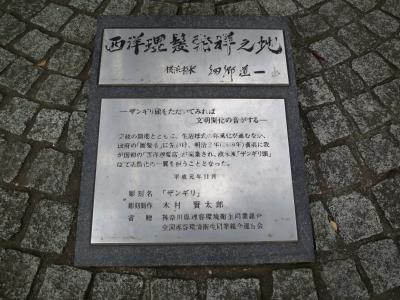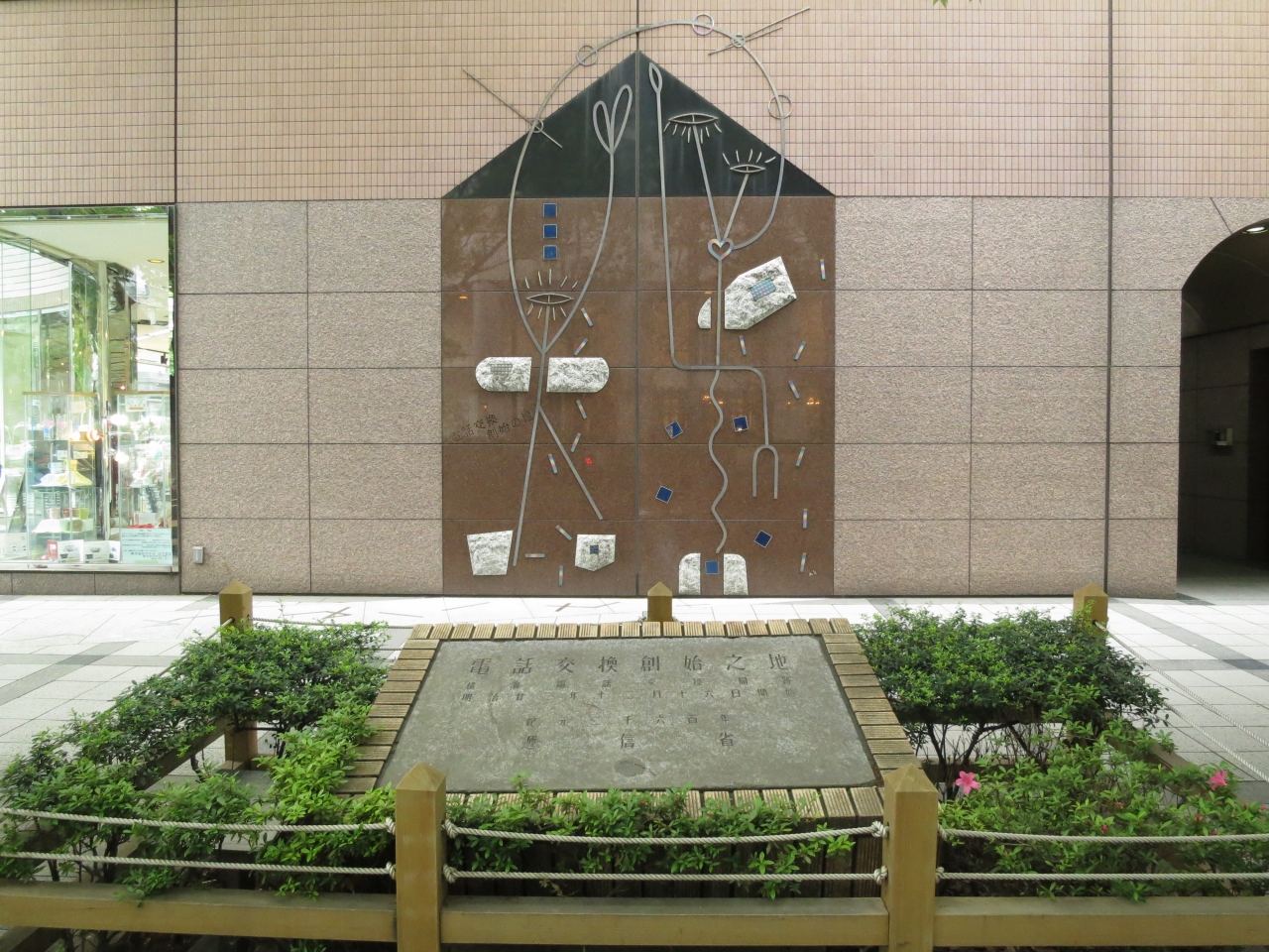 大桟橋通りを歩いていて、本町通りとの交差点脇の植え込みの中に『電話交換創始之地』の石碑を見つけました。石碑の前に建つビルの壁面には、「電話交換創始の地」と刻まれたアートが施されていました。明治23(1890)年、この場所にあった横浜電話交換局において、横浜と東京間及び市内に日本で初めての電話交換業務が開始されたそうです。これと同じ『電話交換創始之地』の碑が、東京の丸の内にもあるそうです。横浜には本当に沢山の“発祥の地”があり、横浜の歴史と発展を感じます。