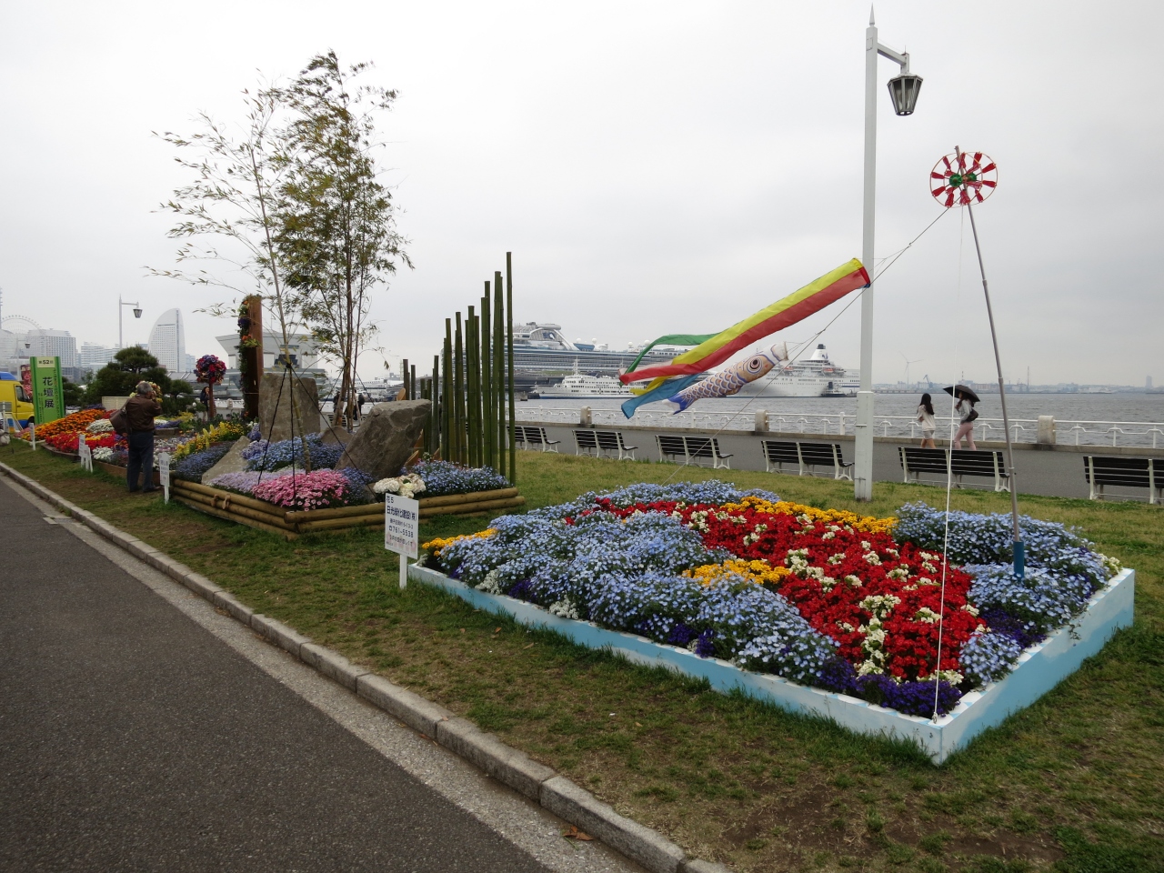 GWに家族で横浜観光に行った際、「よこはま花と緑のスプリングフェア」の花壇展が山下公園で行われていて、見学しました。山下公園の中央広場近くの海沿いの場所に、市内の造園業者などが作成した21区画の花壇が展示されていました。それぞれ趣向を凝らした花壇で、お花が美しく、こいのぼりが立っていたり、盆栽の動物がいたりと子どもたちも楽しく観賞していました。4月には市民投票が行われたようで、入賞した花壇には受賞した賞の名前が掲示されてて、それを見て歩くのもまた楽しかったです。