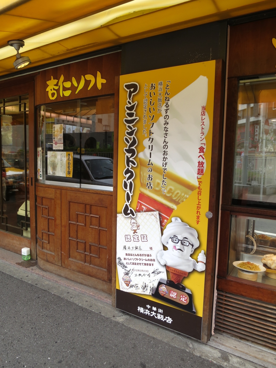 善隣門のすぐ隣、中華街大通り沿いにあるオーダースタイルの食べ放題が大人気の中華料理店です。こちらの食べ放題でも食べられる「極上アンニンソフトクリーム」¥300を、店頭で購入していただきました。濃厚で、しっかり杏仁豆腐の味がする美味しいソフトクリームでした。食後のデザートや、食べ歩きにもオススメの中華街のテイクアウトスイーツです。「とんねるずのみなさんのおかげでした」で「おいしいソフトクリームのお店」として認定もされたようです。