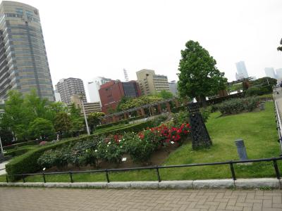 山下公園の中央付近、水の守護神像のある中央広場とおまつり広場の間にある、周りより少し低い場所に整備された花壇(ローズガーデンとしても有名)です。かつては、風や波を避けて船が停泊する船溜まりだった場所を、花壇として利用していて、周囲よりも低い位置に花壇を作ることで、見渡しやすくしているそうです。沈床花壇の中には、ガールスカウトの像やカモメの水兵さんの歌碑などもあります。GWに行きましたが、バラも少し咲き始めていました。