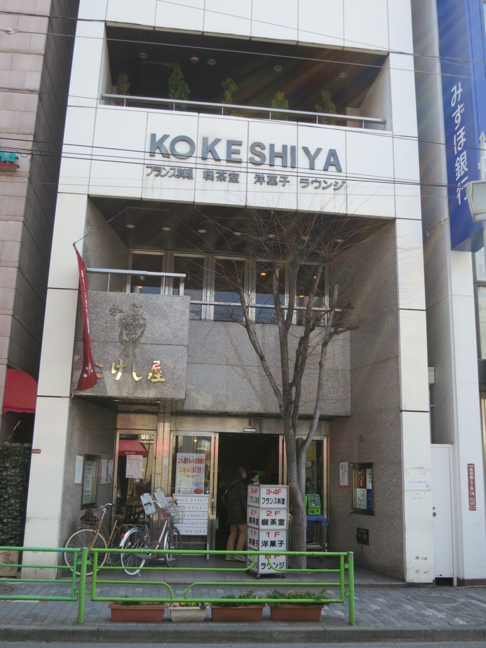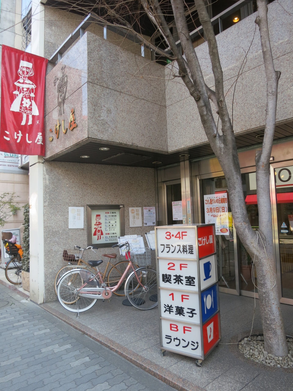 西荻窪駅南口からすぐのところにある洋菓子とフランス料理のお店です。本館は1Fケーキ&洋菓子屋さん、2F喫茶室、3Fレストラン、4F宴会場、別館は1Fテラスレストラン(カフェ)、2F宴会場がある大きなお店です。毎月第二日曜日8時~11時は、『こけし屋のグルメの朝市』が別館前の駐車場で行われています。ちょうど第二日曜日に西荻にいたので、用事が済んだ後、寄ってみましたが、終了間際で残念ながら今回はお買い物出来ませんでした。毎回沢山の人でにぎわっているグルメの朝市は、こけし屋の美味しいお料理が朝市価格でいただけて、とってもオススメです。朝市に行った帰りには、西荻を代表する洋菓子店(本館1F)にも寄ってみるといいと思います。いつも沢山のケーキや焼き菓子が並び、目移りしそうです。個人的には、サバラン(ラム酒のきいたパン生地のケーキ)やアップルパイが好きです。テラスレストランは、21時ラストオーダーなので、西荻で飲んだ後、ケーキ&コーヒーをいただきに寄るのにも重宝しています。