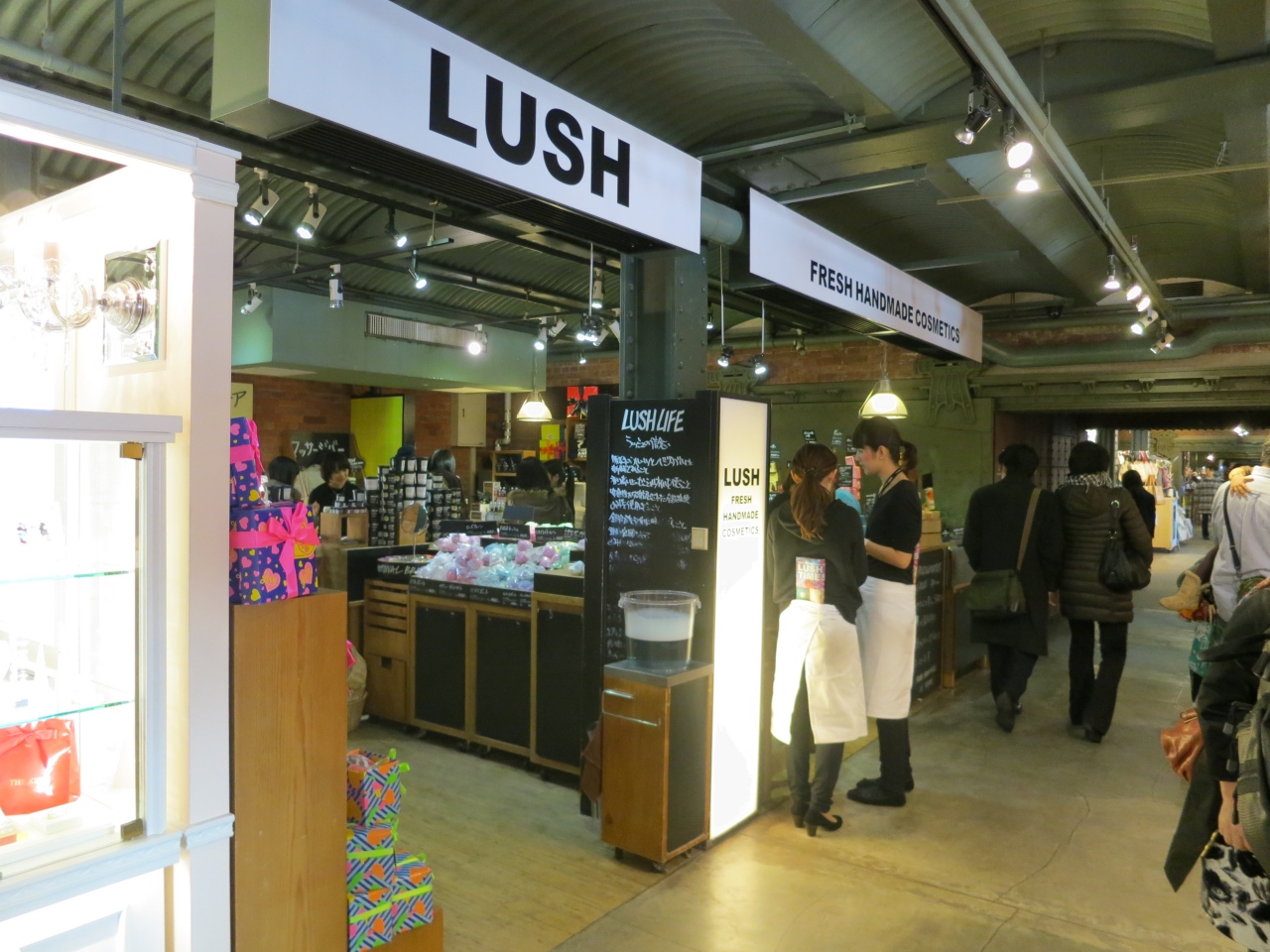家族で横浜赤レンガ倉庫に行ったとき、こちらのお店にも寄りました。イギリス生まれのフレッシュハンドメイドコスメのお店で、新鮮な自然素材で作られた手作りコスメが揃っています。店頭では、フェアトレードのシアバターを使用したハンドクリームのお試しをやっていました。見た目もかわいいバスボム(入浴剤)やソープは、ちょっとしたプレゼントに最適で、Lushを見つけたら、限定モノや新商品などのチェックをしてしまいます。女の子へのプレゼント購入にオススメのお店です。