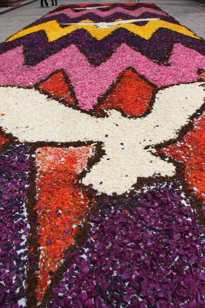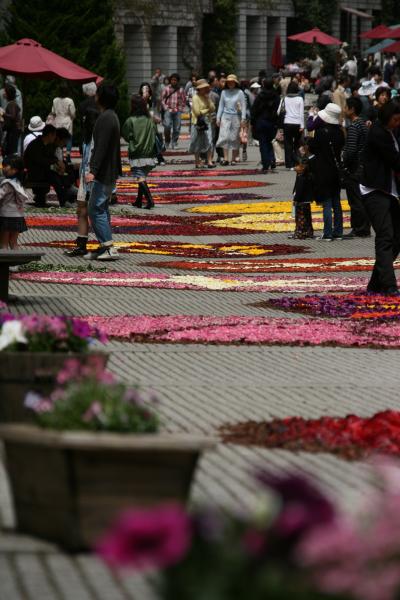 家族旅行で、「花咲くリゾナーレ」開催中のリゾナーレ八ヶ岳に行きました。ホテル中央の「ピーマン通り」に花のじゅうたんが登場し、GWのリゾナーレは沢山の人でにぎわっていました。花のじゅうたんは、栽培過程でやむを得ず廃棄処分されるチューリップの花びらを使用しているらしく、時々スタッフの方が補充している姿も見られました。ピーマン通り沿いには、いろいろなお店が並び、露店も出ていて、地元の美味しいものも揃っていました。よちよち歩きをし始めたばかりの娘と一緒に、ゆっくり通りを歩き、きれいな花のじゅうたんを見たり、お買い物をしたりと楽しかったです。今度はハロウィンやクリスマスイルミネーション(プロジェクションマッピングも開催されているようです)の時期にも行ってみたいです。