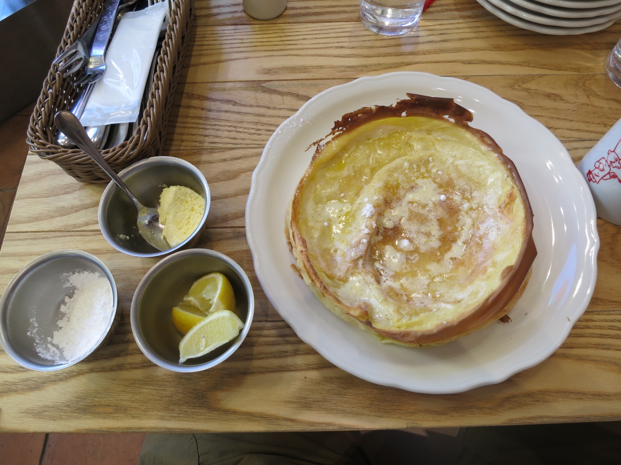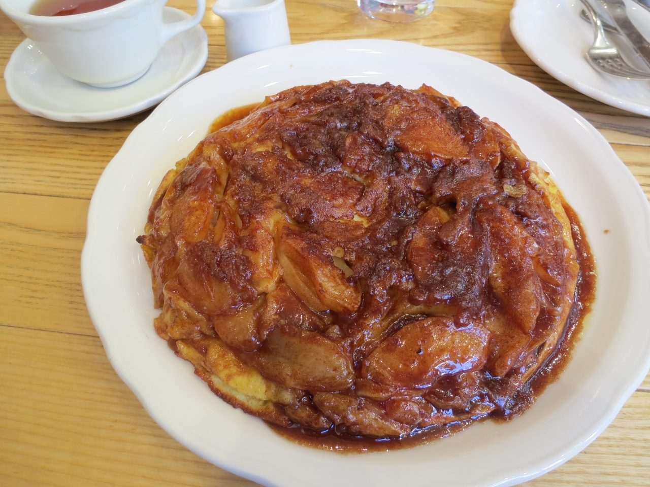 出来てからずっと行ってみたいなぁと思っていたオリジナルパンケーキハウス。週末にマルイにお買い物に行っていて、お昼過ぎに前を通ったら10人くらいしか並んでなかったので、並び、20分くらいで入店出来ました。テラス席(ストーブがあり、ひざ掛けも貸してくれます)だともう少し早く空きましたが、幼児連れなので室内の席を希望しました。注文したのは、ダッチベイビー¥1280とアップルパンケーキ¥1680です。どちらもこれぞアメリカ!と言った感じのパンケーキで、ボリュームたっぷりでした。リンゴやシナモン大好きの私には、アップルパンケーキは好みど真ん中でしたが、このボリュームは1人で完食は厳しそうでした(好きとはいえこの量は飽きてしまいそうでした)。ダッチベイビーは、子どもに大うけで、いくらでも食べられそうな感じ、1人で完食も全然問題なさそうでした。パンケーキは大きいので、何人かで行って、シェアしていろいろ食べるのがいいと思います。シンプルなパンケーキやオムレツも食べてみたいので、また行きたいです。