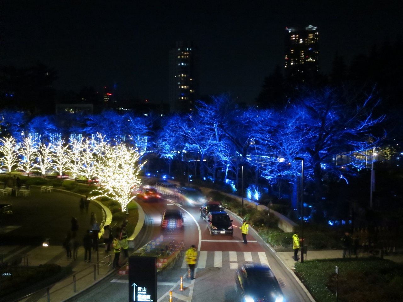 12月上旬の土曜日の夜、家族で車で見に行きました。ミッドタウン地下駐車場はすでに満車で、並んで待っている状態だったので、近くの駐車場(コインパーク六本木7丁目第二 六本木7−16−5辺り)に止めました。ミッドタウン地下駐車場は¥100/10分ですが、こちらも¥200/20分で一日最大¥1200だったので、ミッドタウン地下駐車場よりも安かったです。地下駐車場が空いていない時は、オススメです。ミッドタウンから歩いて5分くらいで、近くにセブンイレブンもあるとても広い駐車場でした。土曜日の夜でも半分くらい空いていました。