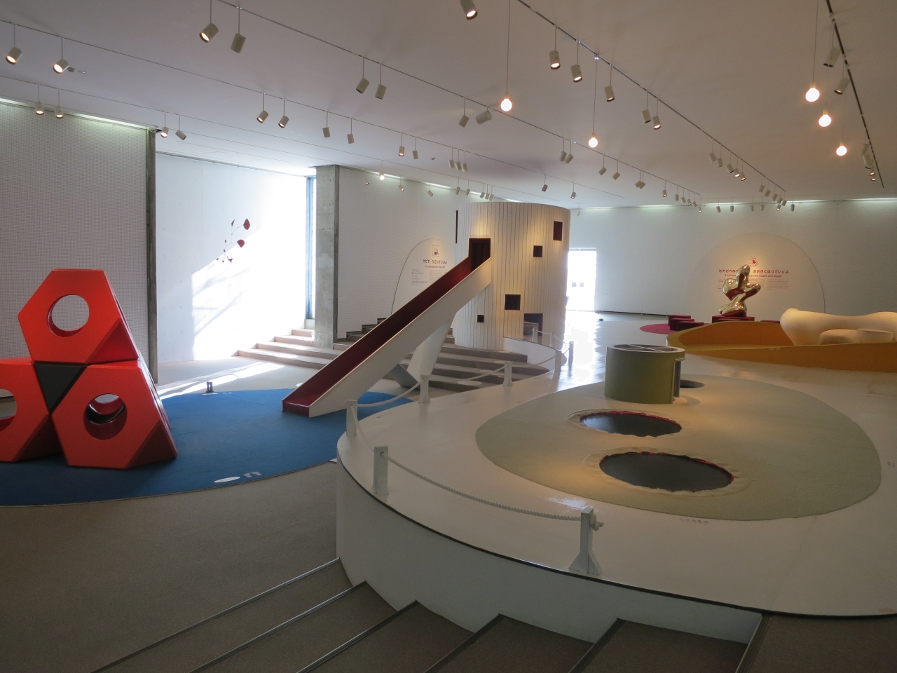 11月下旬の肌寒い晴天の日で、10時前の場内は風も吹いて寒かったので、入場してすぐに室内展示場のアートホールに行きました。室内で、靴を脱いで入るアートホールは、3歳の長女は、隠れたり、登ったり、滑ったり、跳ねたりと公園のように楽しんでいました。1歳になったばかりの次女もよちよち歩きながら、触れてみたり、座ってみたり、隠れてみたり、楽しそうでした。小さな子どもがアートに触れて遊べる、なかなかない貴重な場所で、幼児連れの家族に人気の場所となっていました。- 旅行時期