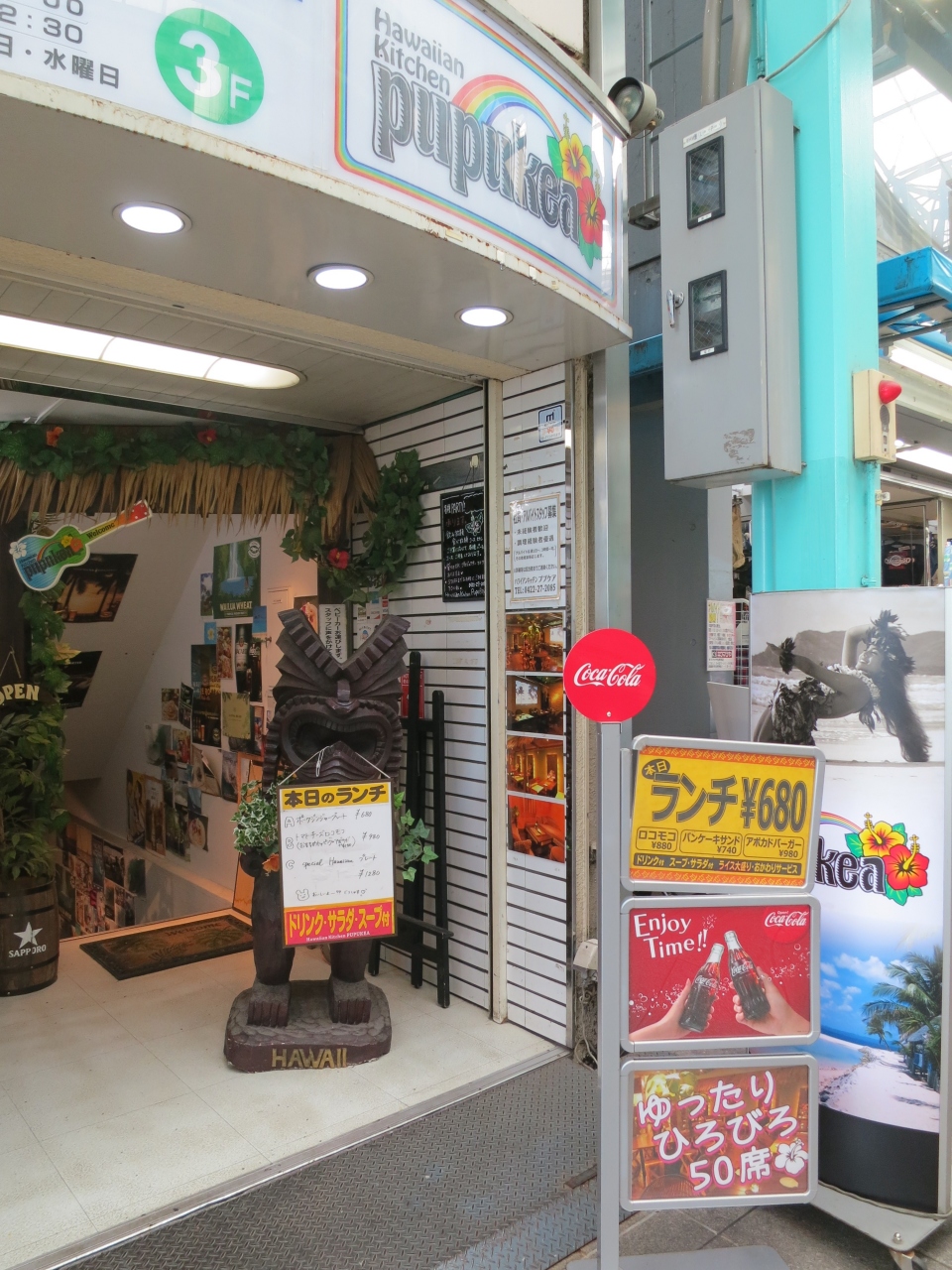サンロードを通っているときに見つけて、週末のランチに家族で行ってみました。地下のお店は、50席ほどあり、広く、開放感があって、地下にいる感じがしませんでした。席はお昼過ぎに半分弱くらい埋まっていました。『マヒマヒバーガープレート』¥980とオススメの『BLTチーズバーガープレート』¥1080、『オハナパンケーキ』¥600を注文しました。なんとハンバーガーが来るまでに、40分以上かかりました。一緒に頼んだパンケーキは、先に来て食べ終わり(5種類のフルーツがそれぞれのったミニパンケーキで、食後のデザートの予定でしたが・・・)、私たち家族より後に来たお隣の家族連れは、ハンバーガーが来る前に食事を終えて帰って行きました(ロコモコ丼を頼んでいたようで、ハンバーガーが時間がかかっていたようです)。やっと届いたマヒマヒバーガーは、魚(マヒマヒ)のフライがバンズからはみ出るほど大きくて、軟らかく、美味しかったです。BLTチーズバーガーもふつうに美味しかったです。バーガープレートには、グリーンサラダ、フライドポテト、コンソメスープ、ドリンクが付いていました。『オハナパンケーキ』は生クリームやフルーツがのっておいしかったけれど、やっぱり行列の出来るハワイアンパンケーキにはかなわないふつうのパンケーキでした。ロコモコ丼やハンバーガー、パンケーキなどハワイアンが充実しているので、ハワイアンが食べたくなったときにはオススメのお店です。またマヒマヒバーガーが食べたくなったら、行きたいと思います。