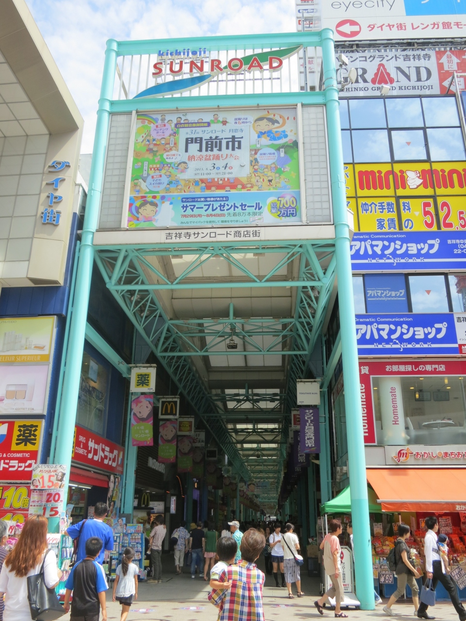 吉祥寺駅北口のロータリーから、北側に向かって五日市街道まで伸びる約300mのアーケードです。スーパーマーケット(西友)やお寺(月窓寺)、映画館(バウスシアター)もあり、その他沢山の飲食店、シューズショップ、ドラッグストア、ファッションショップなどがあります。週末は沢山の人で、歩くのも大変なくらいいつもにぎわっています。アーケードがあるので、お買い物途中によく通ります。