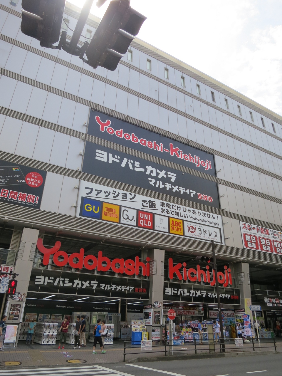 吉祥寺大通り沿いにある大型家電量販店です。品揃えも豊富で充実しているので、ほしい家電があるときはここに行きます。我が家の家電の多くがここで購入したものです。売り場は広く、店員さんも多いのですが、お客さんも多く、休日は説明などを受けるのも大変です。電動自転車(5F)もここで買いましたが、街の自転車屋さんに比べて品揃えが多く、現物を見て検討できたのでよかったです。その他、玩具(5F)も充実していて、買い物を待つ間に子どもと遊びに行くのも楽しい場所です。B1F~5Fがヨドバシカメラで、B2F&B3Fが駐車場、6F&7Fが専門店(ユニクロもあります)、8Fがレストラン街になっています。