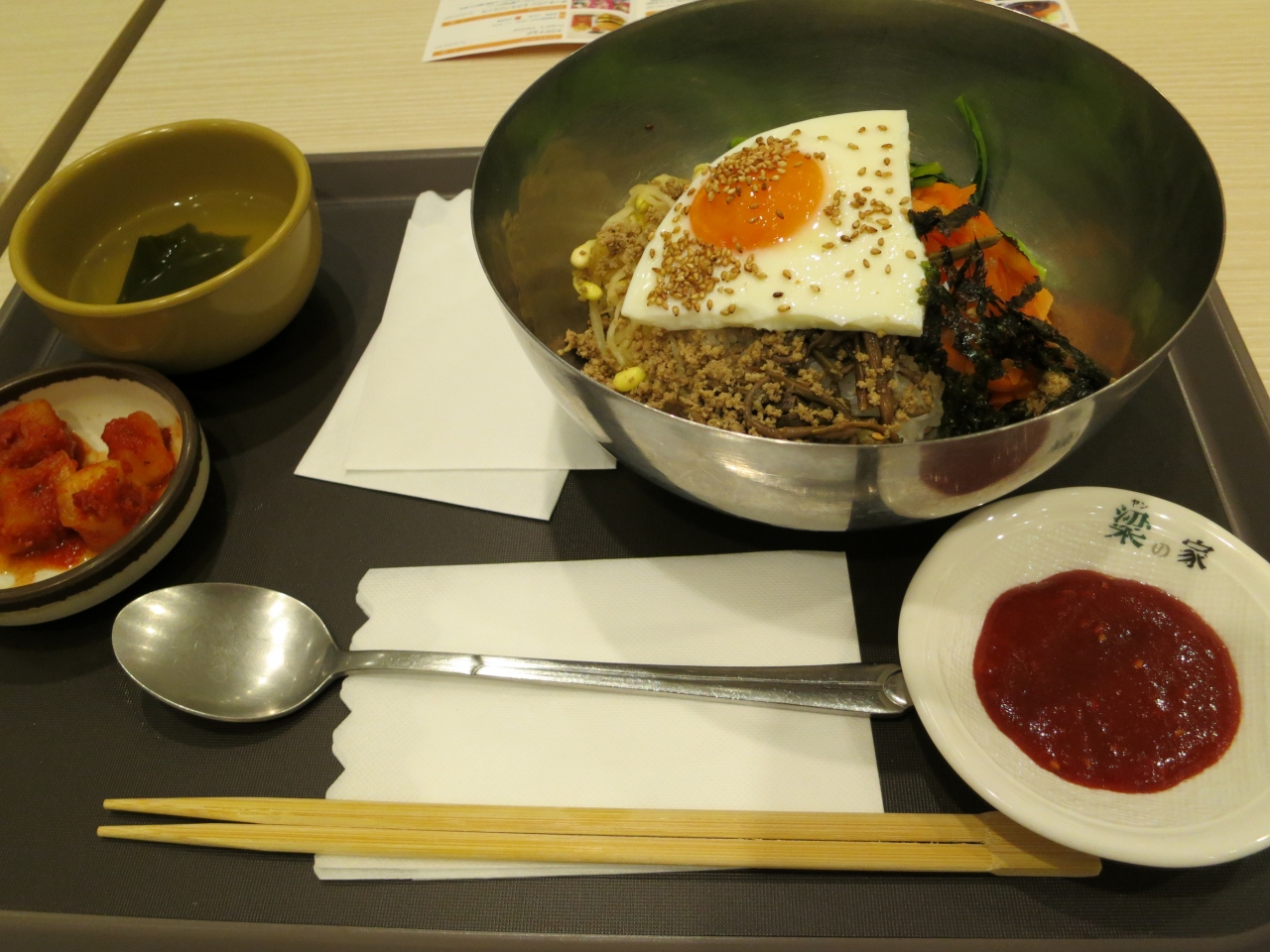 ダイバーシティ東京プラザのフードコート『東京グルメスタジアム』の中にある韓国料理のお店です。韓国家庭料理で有名な新大久保にある『梁の家』の味が食べれるということで『ビビンパ定食』\680を頼みました。期待した通りの美味しいビビンパでした。お店の前には、沢山来店された有名人の写真が貼ってありました。