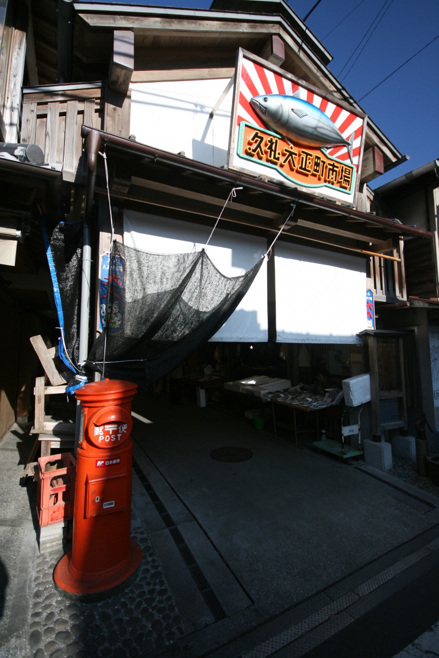 中土佐町の中心部にある、20軒ほどのお店が並ぶ商店街です。久礼港で取れたばかりの新鮮な魚や、地元で作っている干物、地元で取れたお野菜や果物、おばあちゃんたちが作ったお惣菜などを売っています。『市場のめし屋浜ちゃん』でお昼ごはんをいただきましたが、新鮮なカツオが美味しかったです。見るだけでも楽しい、どこか懐かしい感じもする活気ある商店街で、お土産探しにはオススメです。近くに無料の広い駐車場(30台くらい)があり、そこから久礼の街並みやお店、久礼八幡宮、海などを散策しながら久礼大正町市場に向かうのも楽しいです。