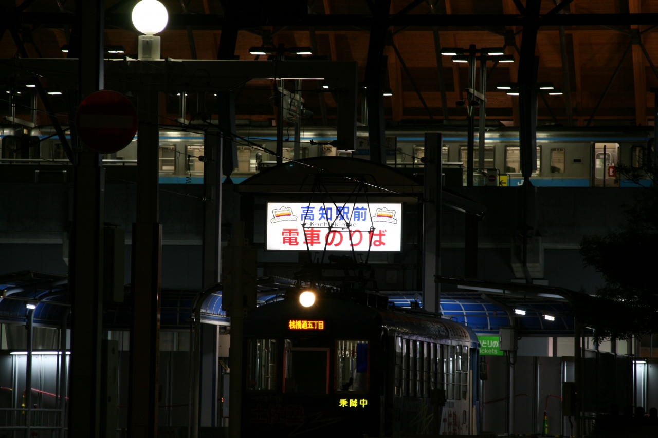 高知市内を中心に、十字に(東は後免(ごめん)から西は伊野まで、北は高知駅から南は桟橋通5丁目まで)路面電車が走っています。営業距離は25.3キロで、名鉄の29.9キロに次いで全国2位、今では日本で最も歴史の長い現在も走っている路面電車です。街中を路面電車が走る景色は、高知らしく、市民の足になっています。5~6分に1本くらい走っているので、ちょっとした移動にとても便利です。車道を車と並んで走ったり、信号で停止したり、ゴトゴトゴトゴトとあわてないゆっくりとした高知らしい土佐路観光ができると思います。乗り降り自由の1日乗車券市内均一区間\500、全線\800もあります。