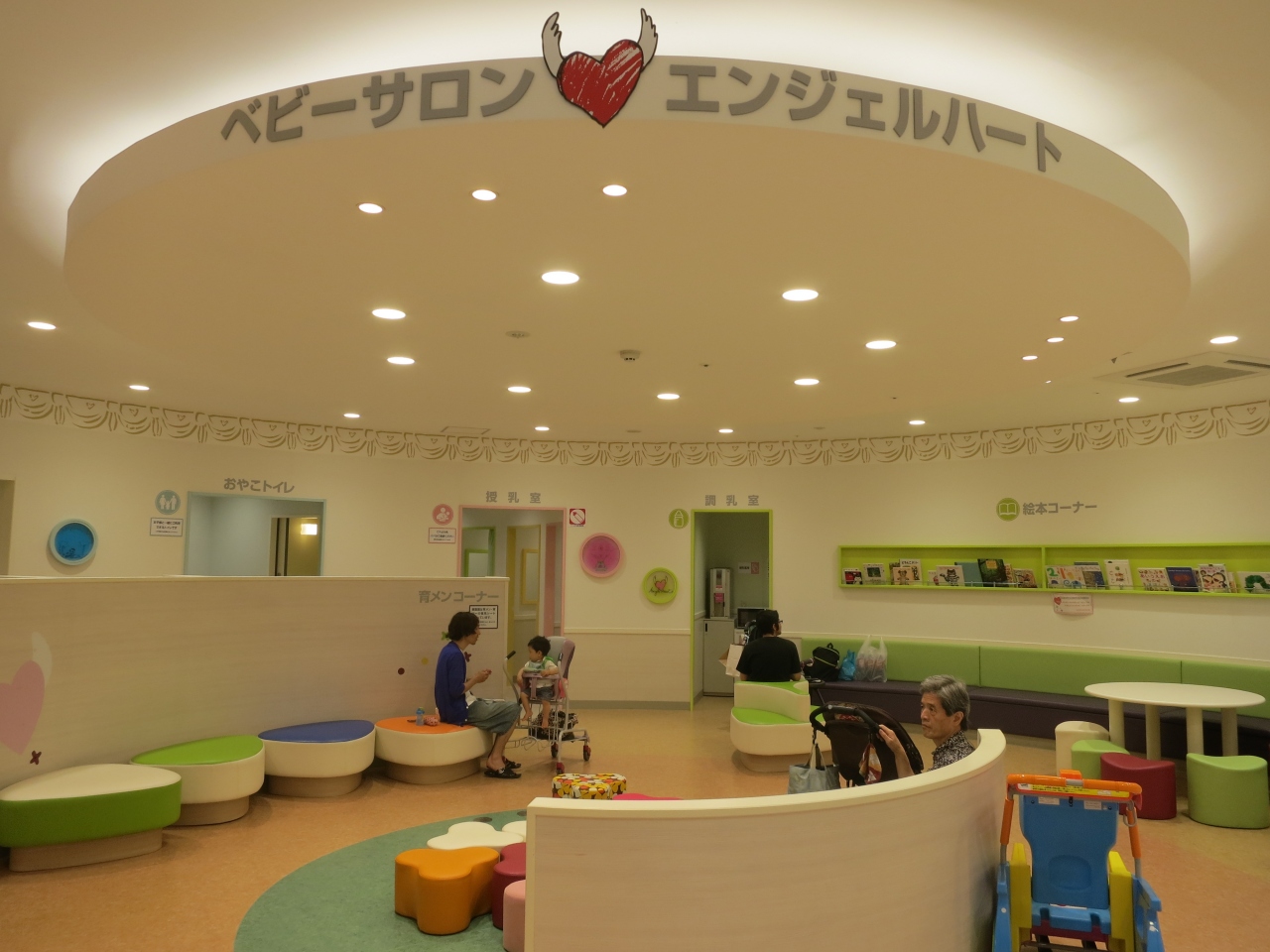 2013年4月にオープンしたばかりのイオンモールで、最新の品揃えとサービスが魅力的です。3階には、オムツ替えコーナーや親子トイレ、授乳室などを備えたベビーサロン『エンジェルハート』があります。つかまりオムツ替え台や育メンコーナー、絵本コーナーなどもあり、乳幼児連れの家族が快適に過ごせる空間になっています。またキッズ広場『なかよしプレイグラウンド』もフードコートの横にあり、未就学児が楽しく遊べる空間になっています。イオンむさし村山店やイオン日の出店に比べると、イオンも専門店街も小さめですが、乳幼児連れで行くには充分な広さと充実度です。