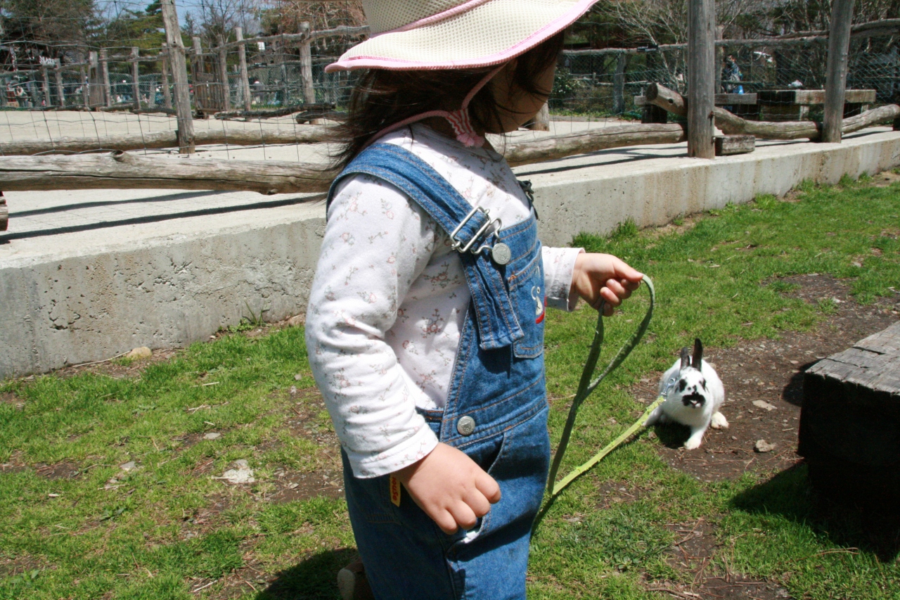 朝8時からオープンしているので、那須高原に泊まった次の日に朝一番に行きました。4月の風を感じながら、大自然の中の牧場を散歩するのは気持ちよかったです。ウシ、ヒツジ、ヤギ、馬、ロバ、ウサギなどの動物が点在しているので、2歳になったばかりの娘は、動物を見つけるたびに足を止めてしばらく見ていました。動物ふれあい広場やうさぎのレンタル、乗馬、マス釣りなど有料で楽しめるアクティビティも充実しています。娘は、うさきさんとお散歩したいということで、『うさぎのレンタル』\500/20分をしました。リード付きのうさぎさんを1匹借りて、草原の上でお散歩したり、木のベンチに座って抱っこしてみたり、たまにうさぎさんが脱走したり。あっという間の楽しい20分でした。沢山の動物と触れ合えるほか、お食事やお土産も充実しています。南ヶ丘牧場の特選牛乳「ガーンジィゴールデンミルク」を使ったソフトクリームは、濃厚でとっても美味しかったです(これを食べるために立ち寄っても損はないと思います!)。入場料・駐車料無料なので、那須高原観光の際にはオススメです。