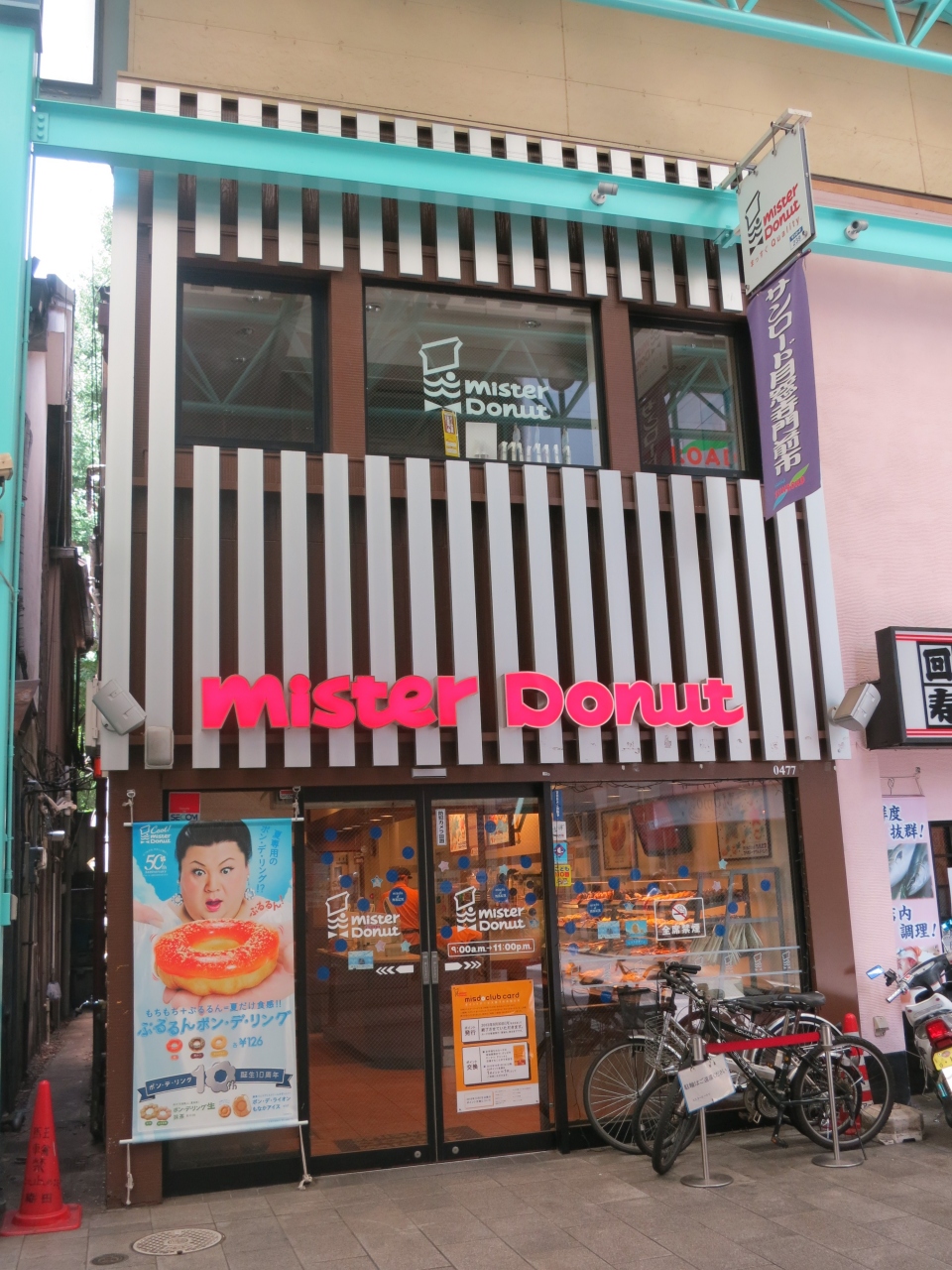 カウンターでほしいドーナツやパイを言って取ってもらうのではなく、自分でほしいものを取って、レジに持って行き、お会計をするタイプのミスドのお店です(ゆっくり迷えるのでこのシステムが好きです)。\100&\120セールのときは、お店の外まで並んでいることもあります。サンロード商店街の北の方(西友や月窓寺の近く)にあり、お買い物の休憩にも便利です。イートインスペースは、1階と2階にありますが、よく行くお昼過ぎの時間帯はいつも混んでいて、席を見つけるのが大変です。お替り自由のホットカフェオレ(ブレンドコーヒーもあります)は、普段ほとんどコーヒーを飲まない私にもやさしい味でお気に入りです。たまに食べたくなるミスド(混んでいることが多いのでいつもは買って帰ります)、そしてたまに飲みたくなるホットカフェオレ(がんばって席を見つけます)です。