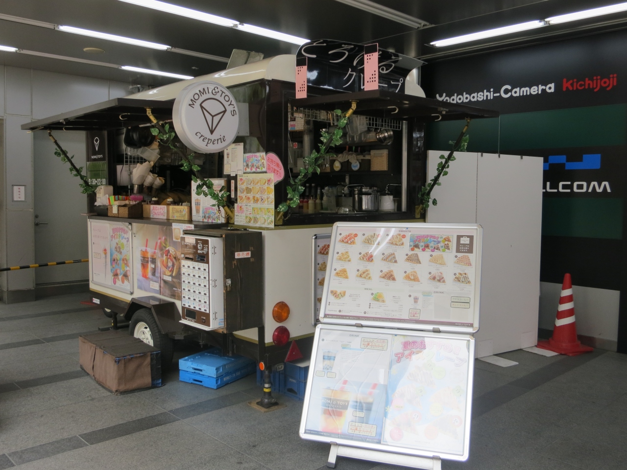 ヨドバシカメラ吉祥寺店の入口横にあるトレーラー販売のクレープ屋さんです。お店の前にはベンチがあり、お買い物途中の軽食や休憩にオススメです。トレーラー脇の券売機でチケットを購入し、カウンターに出して注文し、クレープやドリンクを受け取ります。大好きなタピオカドリンク(種類も沢山あります)も扱っていて、どれも\290です。クレープは、スイーツ系からミール系まであり、ごはんを巻いたライスロールなどもあります。『濃厚チーズとツナのサラダ』は、ふんわりしたクレープ生地とチーズ、ツナ、マヨネーズのバランスがよくお気に入りです。14時までは、ランチセット(ミールクレープ1つとドリンク1つが\500)がお得です。