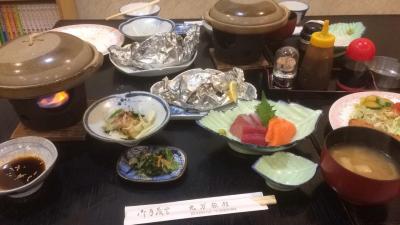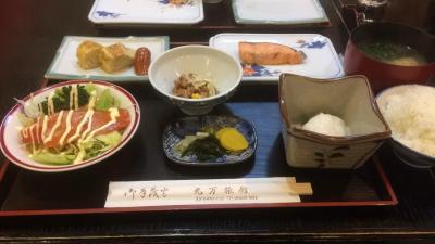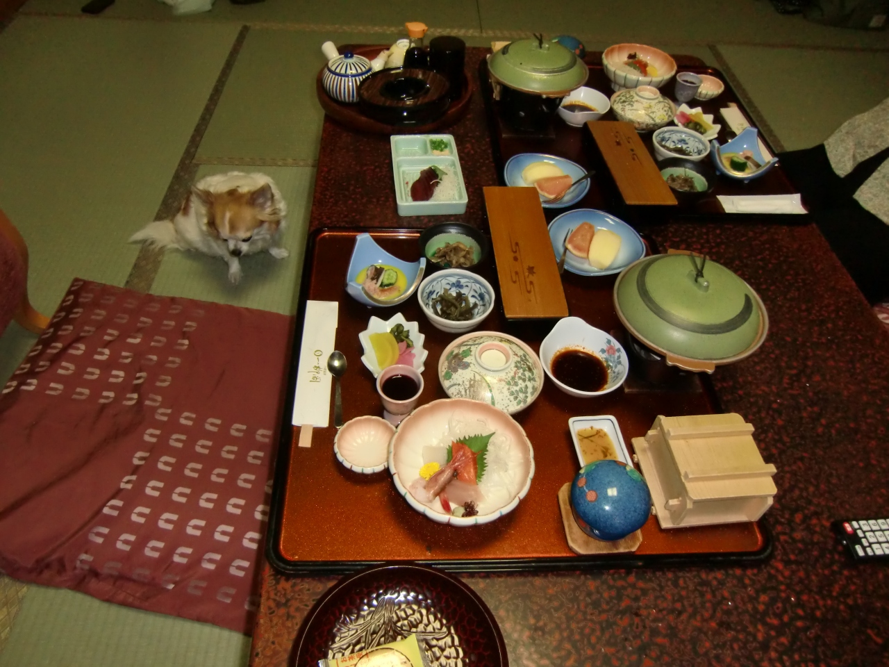 この日は宿泊客が少なかったせいか食事は隣の部屋に移動していただきました。食事をした部屋は6畳でしたが改装されたようできれいな部屋でした。ただし部屋にトイレはありませんでした。泊まった部屋のテーブルが結構古かったので別室で食事ができてよかったです。夕食は鍋物はありませんでしたが焼魚以外は暖かいものは暖かいうちに持ってきて来ていただけました。