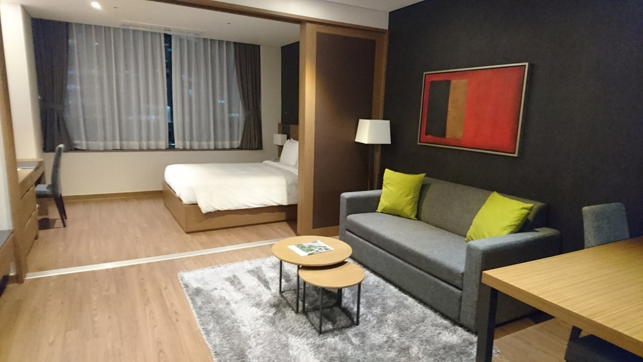 キッチンや大型冷蔵庫、電子レンジまであるので本当に便利です。駅からは少し距離がありますが西大門駅からは5分程度、ソウル駅からも歩ける距離です。。ホテル横にはコーヒービーン、裏にはセブンイレブンとレストランがありました。チェックインの時、フロントには日本語が話せるスタッフがいました。
