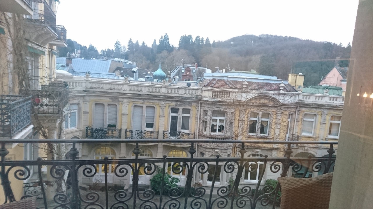 歩くとキシキシ音がする床もこの雰囲気のホテルでは許せてしまいます。バルコニーから見える景色もいい雰囲気です。