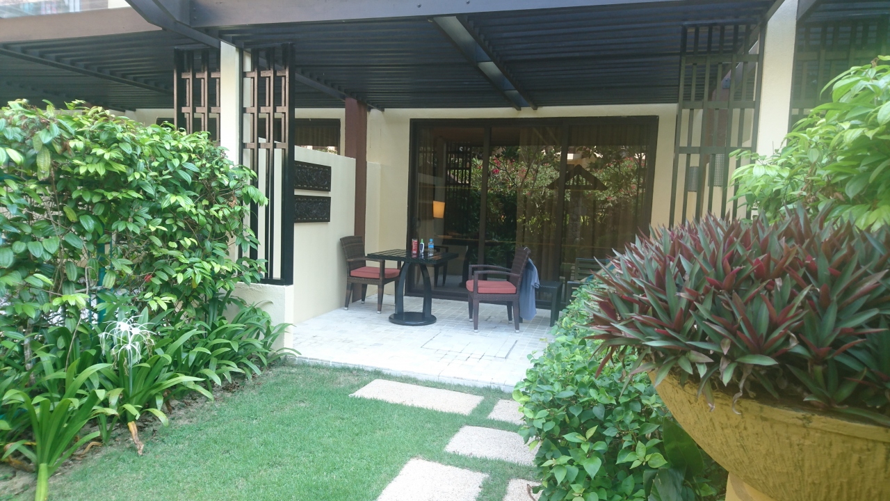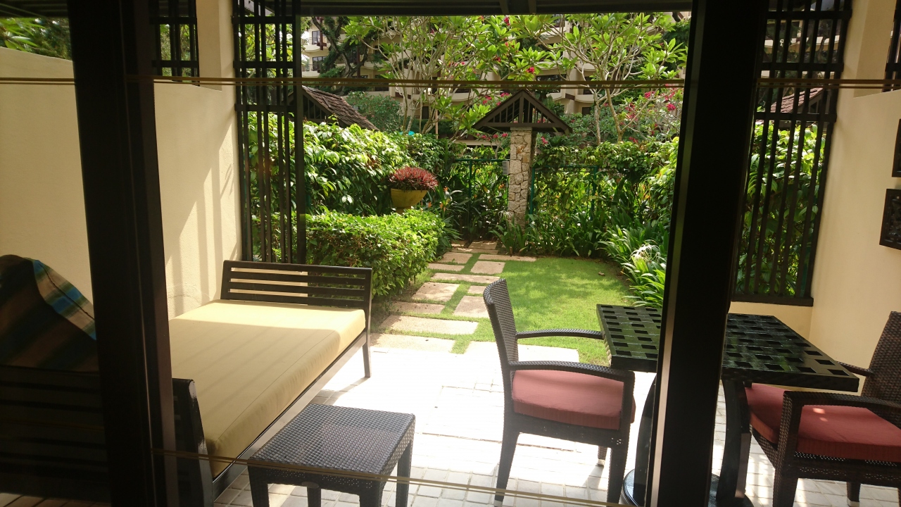 私たちが泊まった部屋はラサウイングの1階の庭付きです。庭からプールに直接出られますが外からカギがかけられないので結局ドアから普通に出ることになりますが・・・