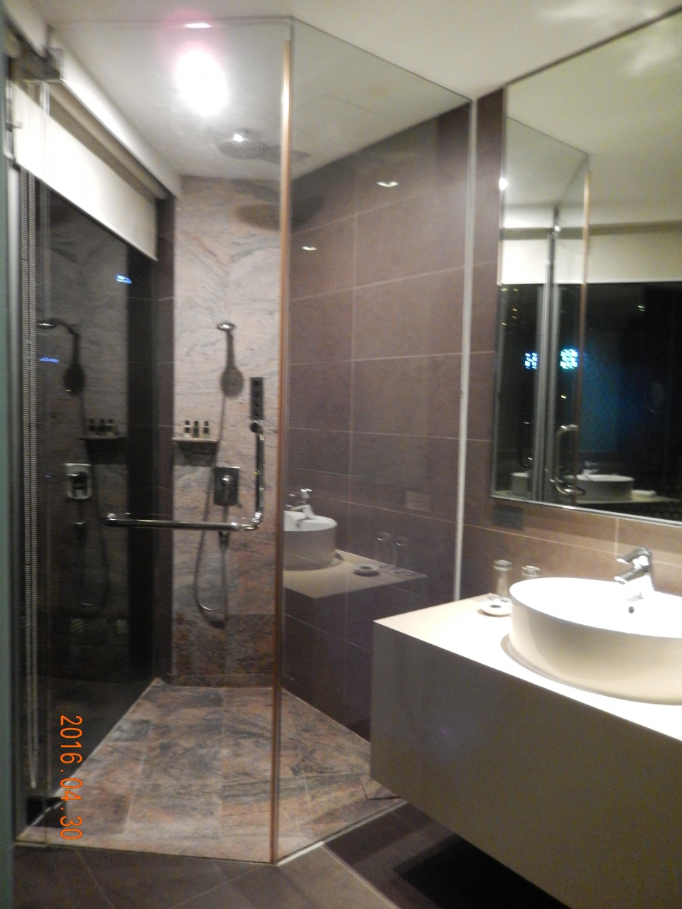 ただガラス張りで仕切られたバスタブはシャワーを勢いよく浴びると
