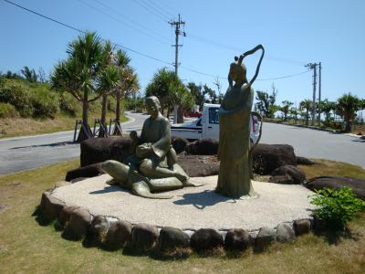 浦島太郎の像の拳が笑えます。何か持っていたものが、とれちゃったみたい。...