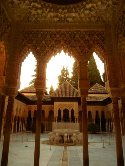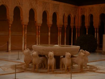 獅子の中庭。ムハンマド5世による建築。庭の中央には12体のライオン像。...