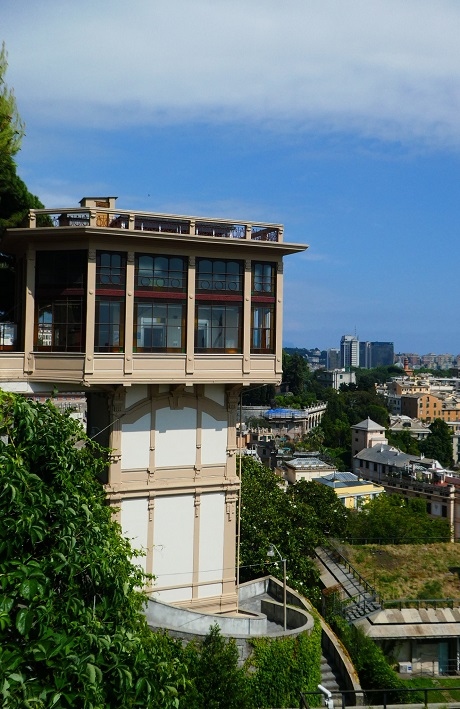 南側のAscensore Castelletto Levanteは、ガリバルディ通りの東端の北側にあるPiazza del Portelloに下の乗り場があり、Belvedere Montaldo Luigi, 1に出られます。