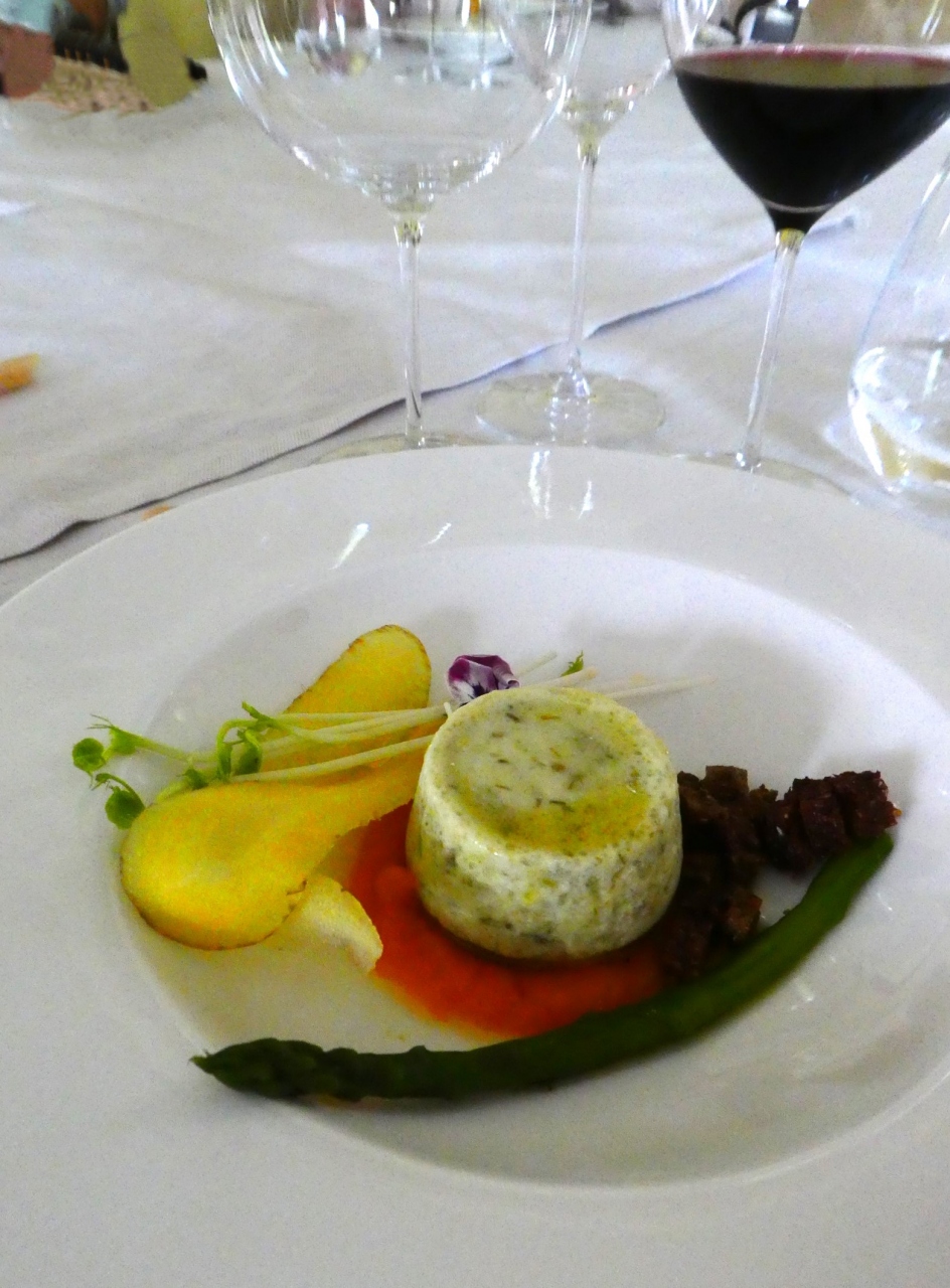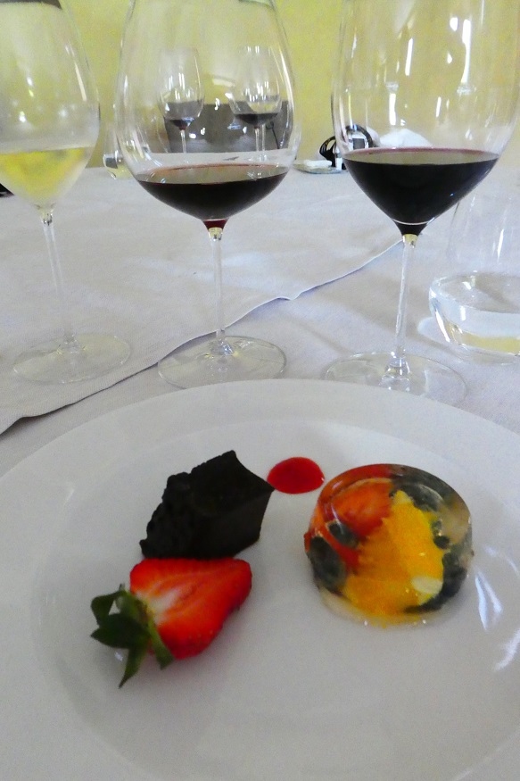 お昼ごはんは前菜、メイン、デザートの3コースで、それぞれ料理に合わせたワインが付いています。