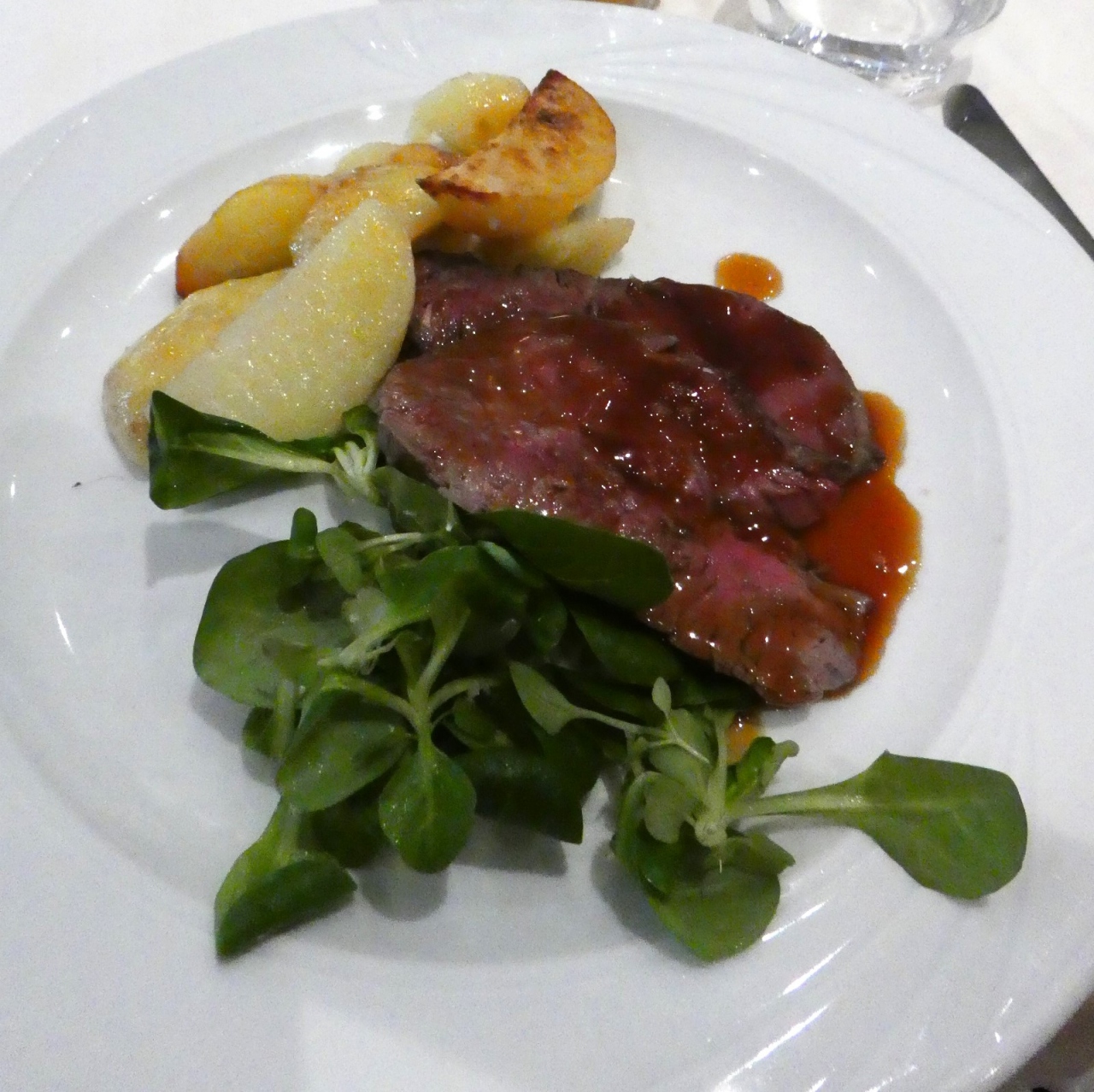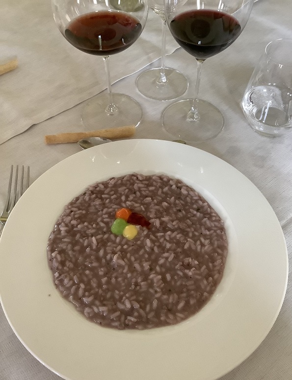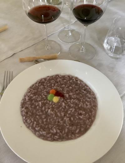 メインはこちらのバローロのワインを使ったワインリゾット。デザートも地元名産のBonet(=ボネットというチョコプリンのようなチョコケーキのようなもの。このあたりだとブネと呼ばれているようです)、と名物料理を楽しめました。