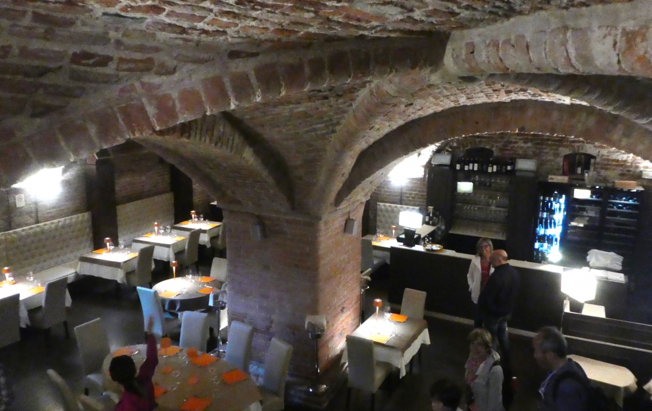 市庁舎のある広場から一本入ったところですが、広場に面してるともいえる近さのところにあります。地下に降りた、元はワインセラーだったと思しき場所にあるレストランです。