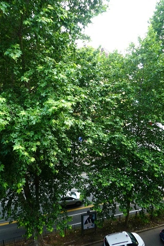 大通り沿いの部屋でしたが、二重窓を閉めると外の音は全然気になりません。季節的に見えるのは街路樹の葉っぱだけだったので、選べるんだったら、側面の隣りのアールヌーボー建物が見える方がよかったな~、なんて思っています。